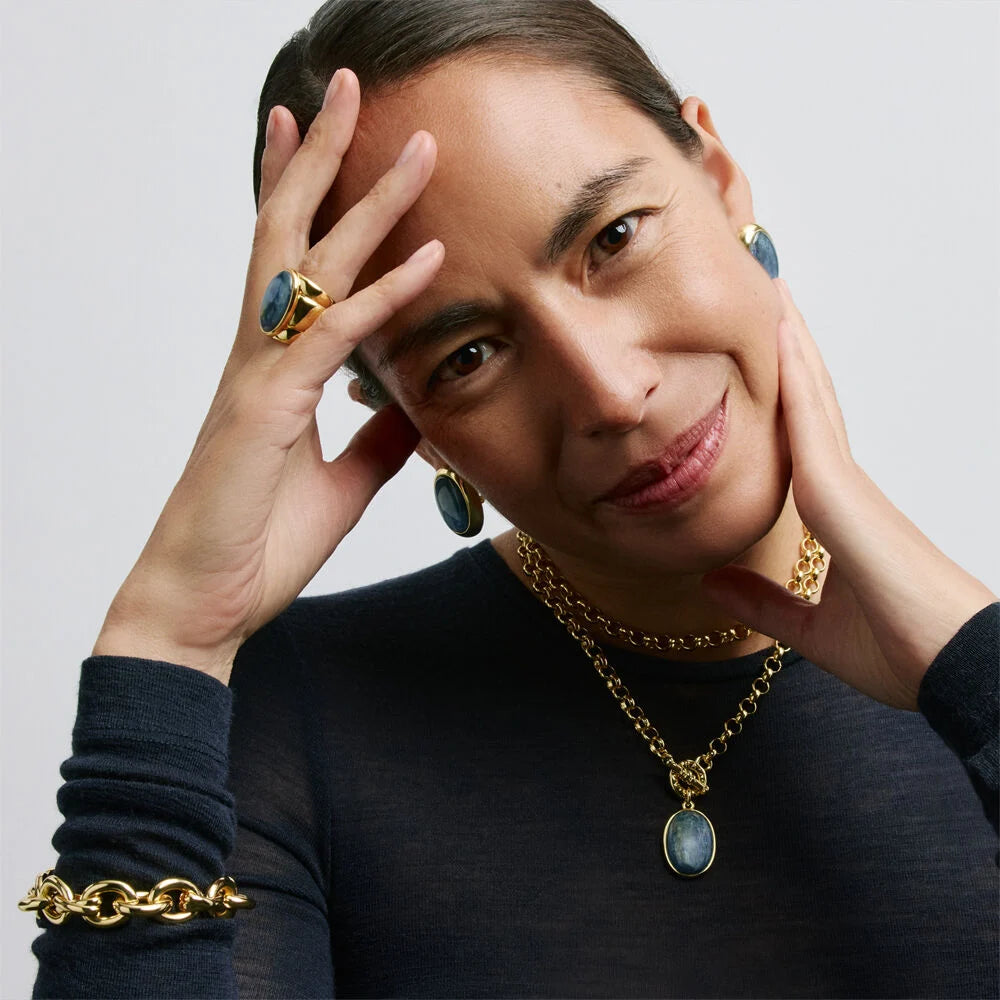 Anillo AGATHA PARIS La Riviera acabado dorado y piedra natural en color azul