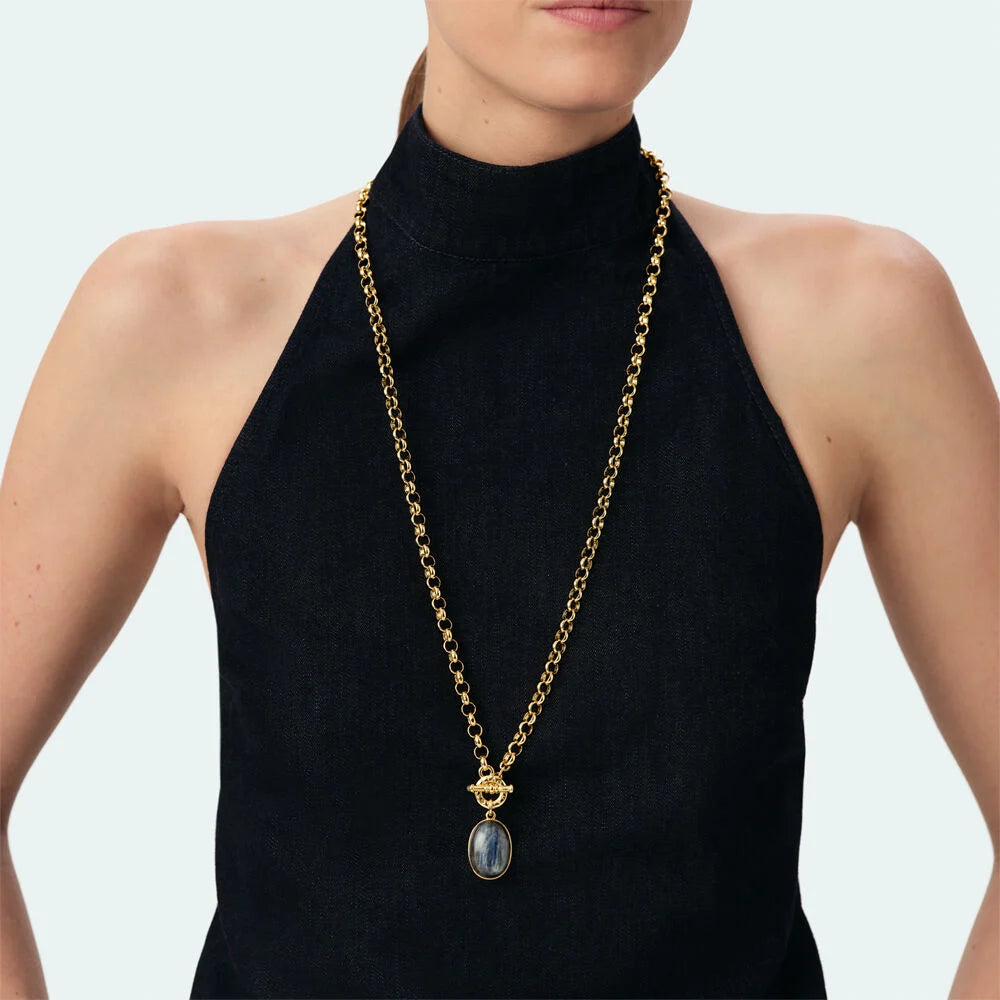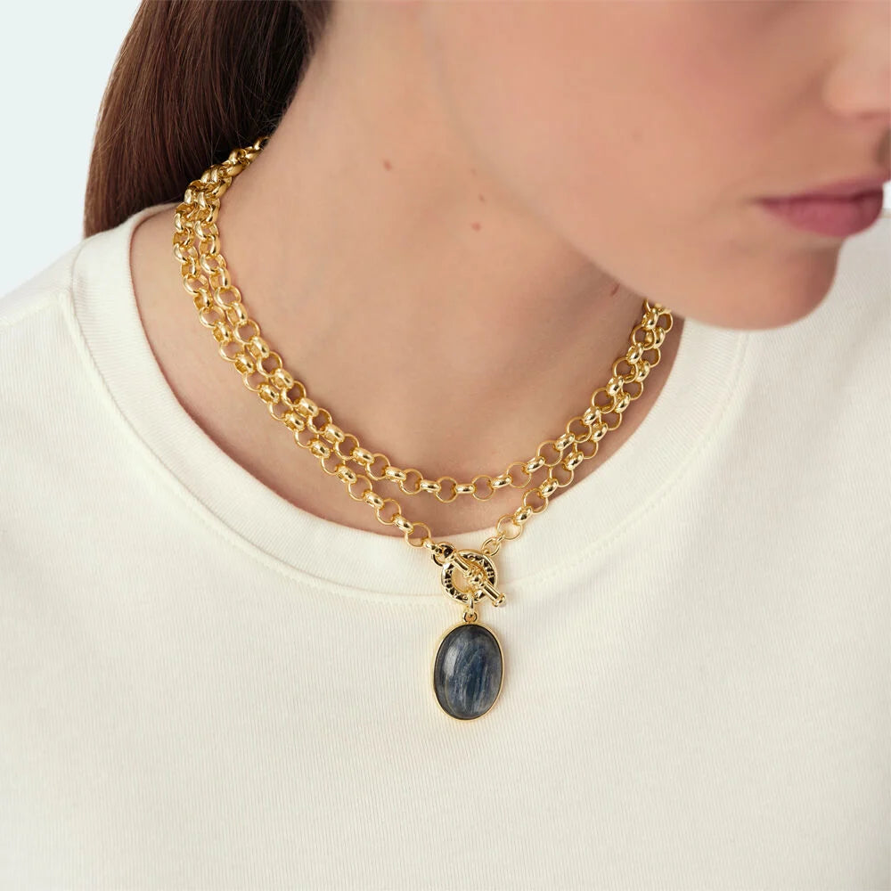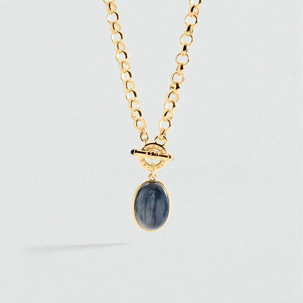 Collar AGATHA PARIS La Riviera de eslabones acabado en dorado, con colgante de piedra azul.