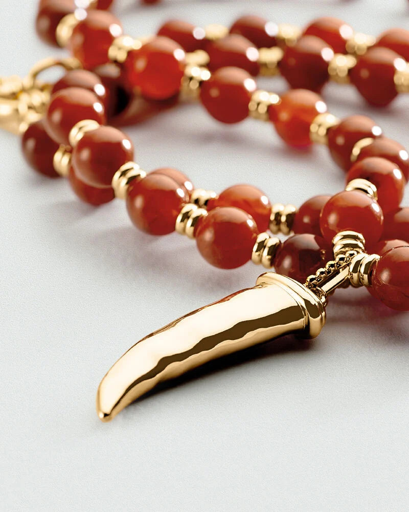 Collar AGATHA PARIS colección BE de acetato en color tierra con cuerno de la abundancia en dorado.