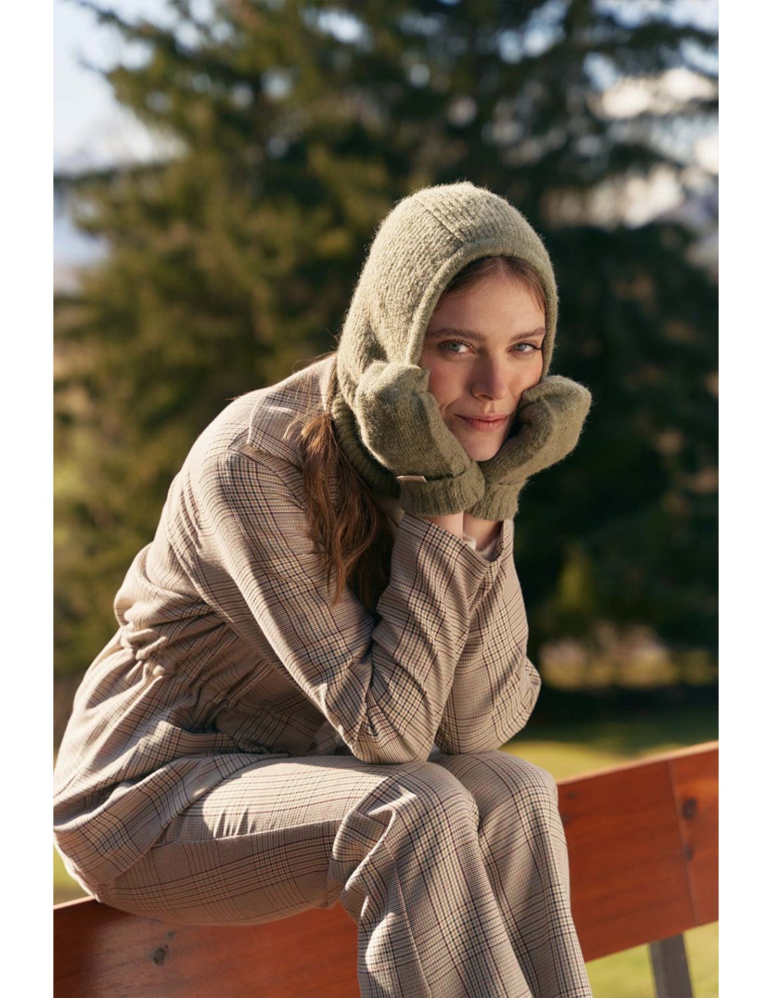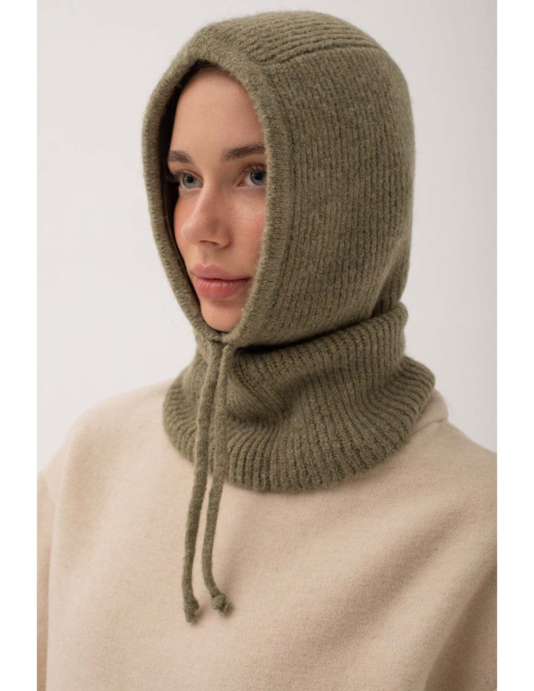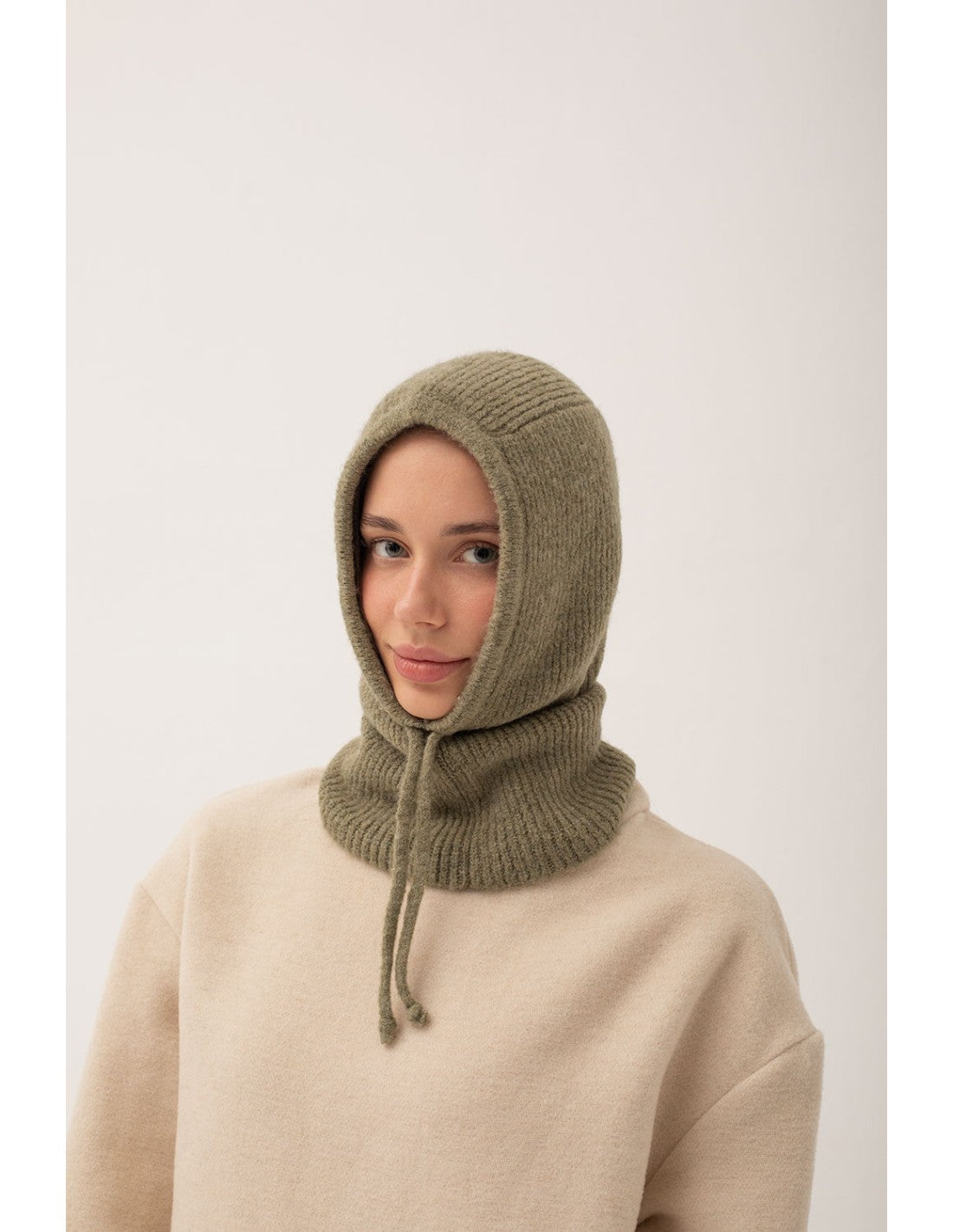 Balaclava Mus & Bombon Vezi en color verde de punto con cordón ajustable.