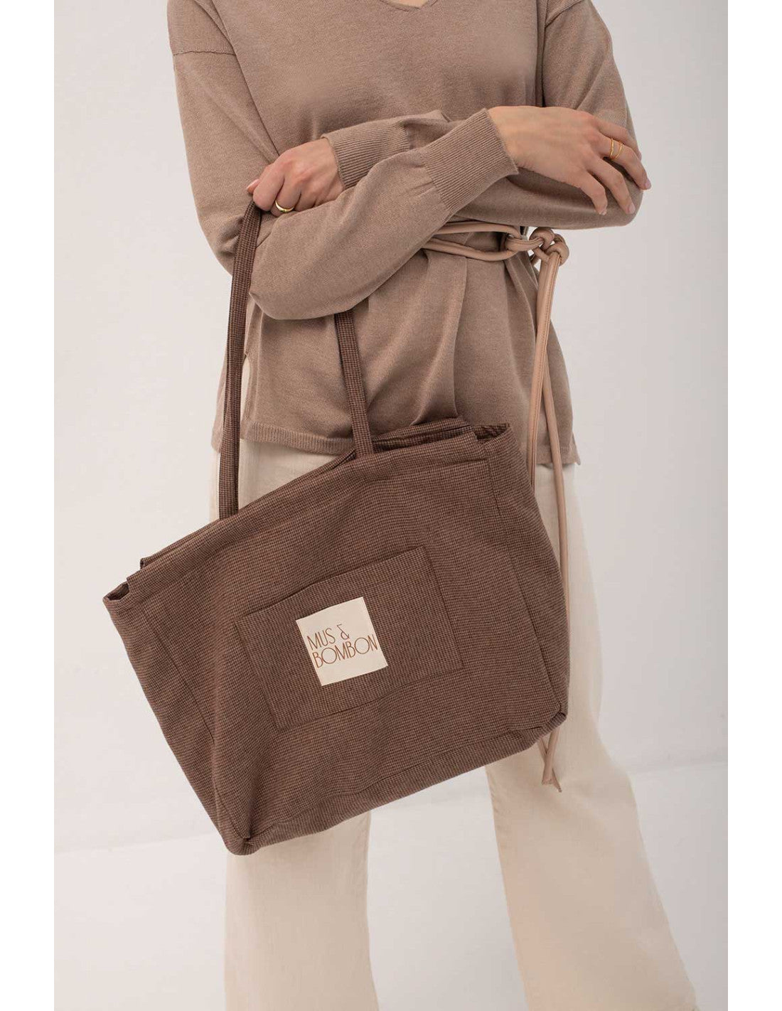 Bolso Mus & Bombon Yukon de tela en estampado de cuadros vichy color marrón.