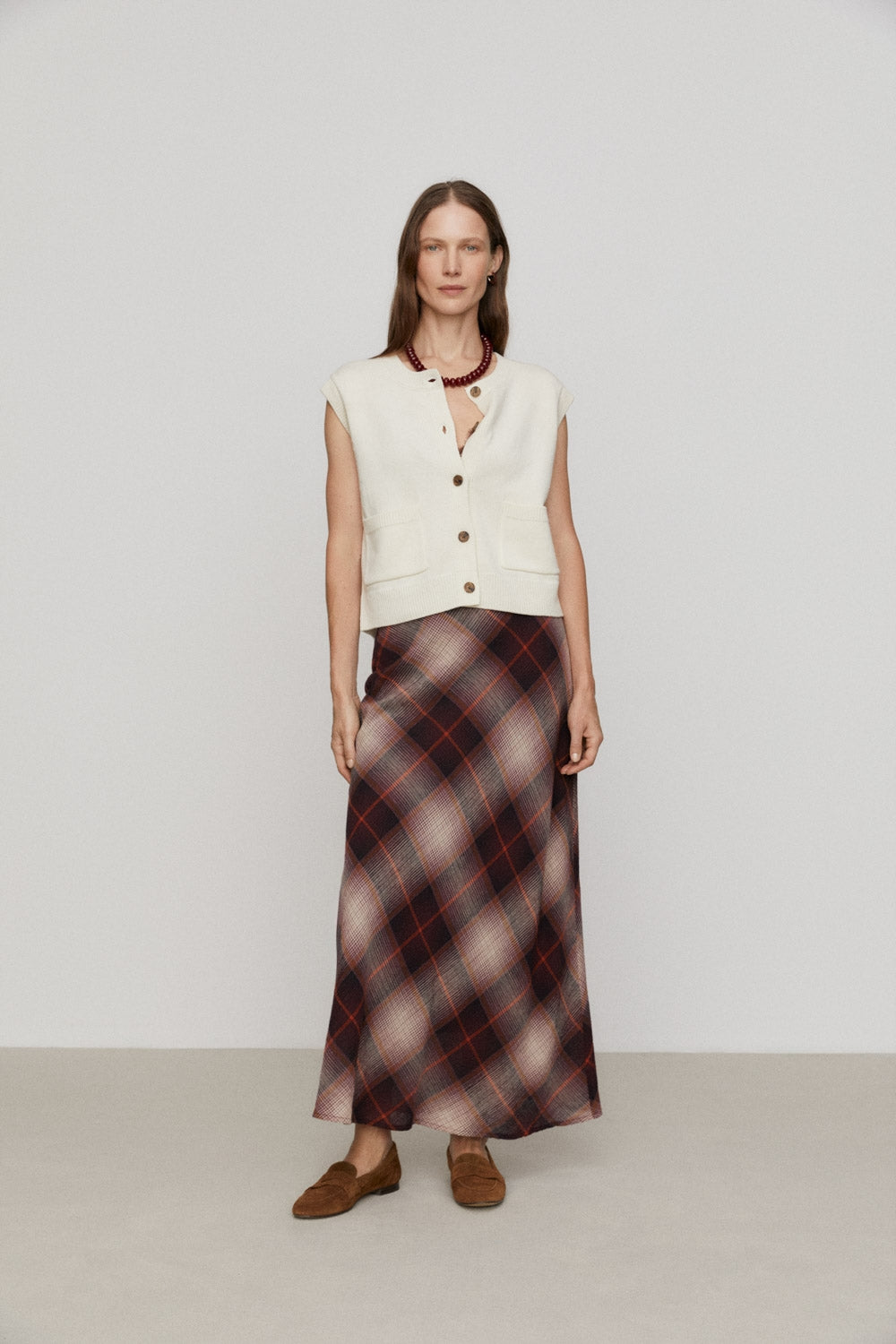 Chaleco eseOese Portofino crudo, cuello caja y cierre con botones.