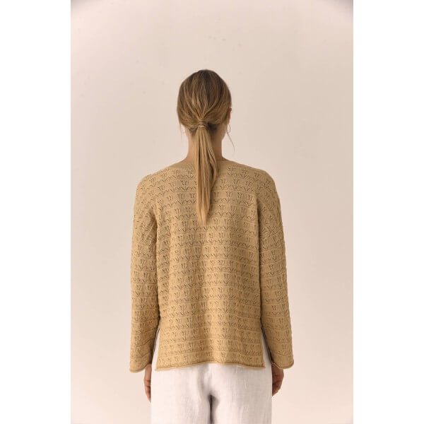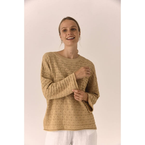 Jersey designers society gual en color arena, con calados en forma de flor. El jersey designers society gual es especial por sus mangas acampanadas.