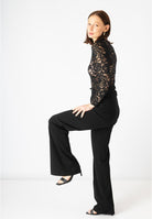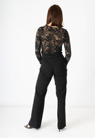 Pantalón ANIMOSA Negro de tiro alto y corte recto, cintura ajustable con gomas.