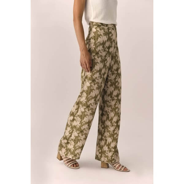 Pantalón designers society arroyo estampado en tonos verde y beige, cierre con cremallera lateral. Pantalón designers society arroyo es fluido, confeccionado en viscosa.