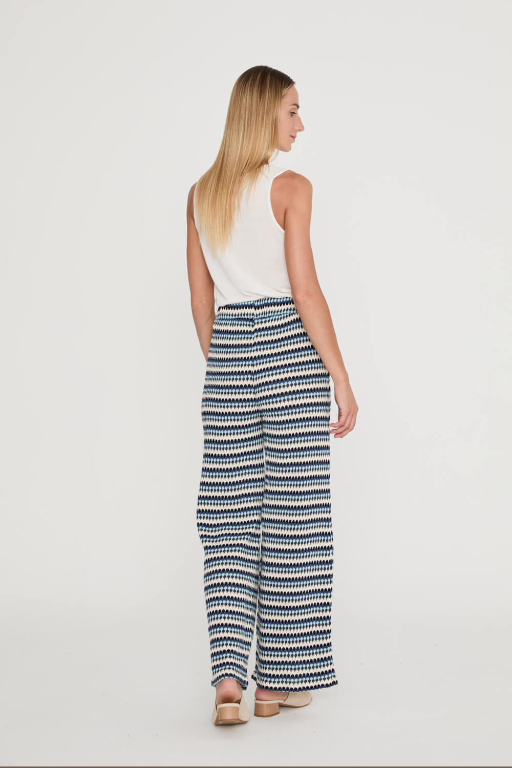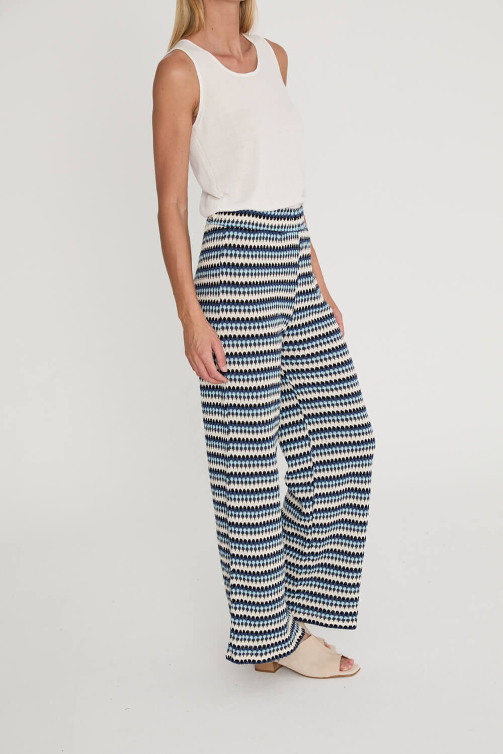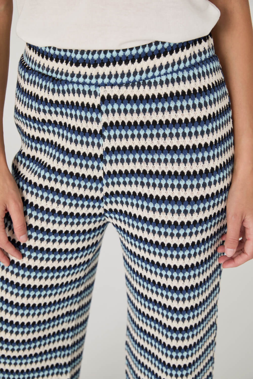 Pantalon Designers Society Lasdun en tonos azules, con tejido de malla especial y cintura de goma.
