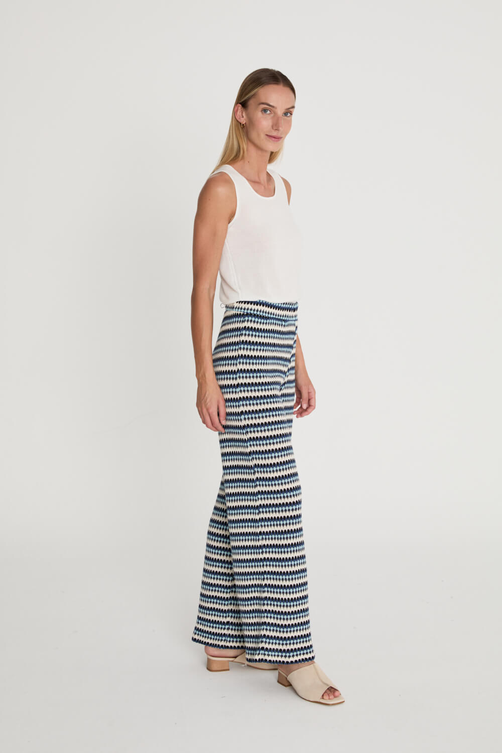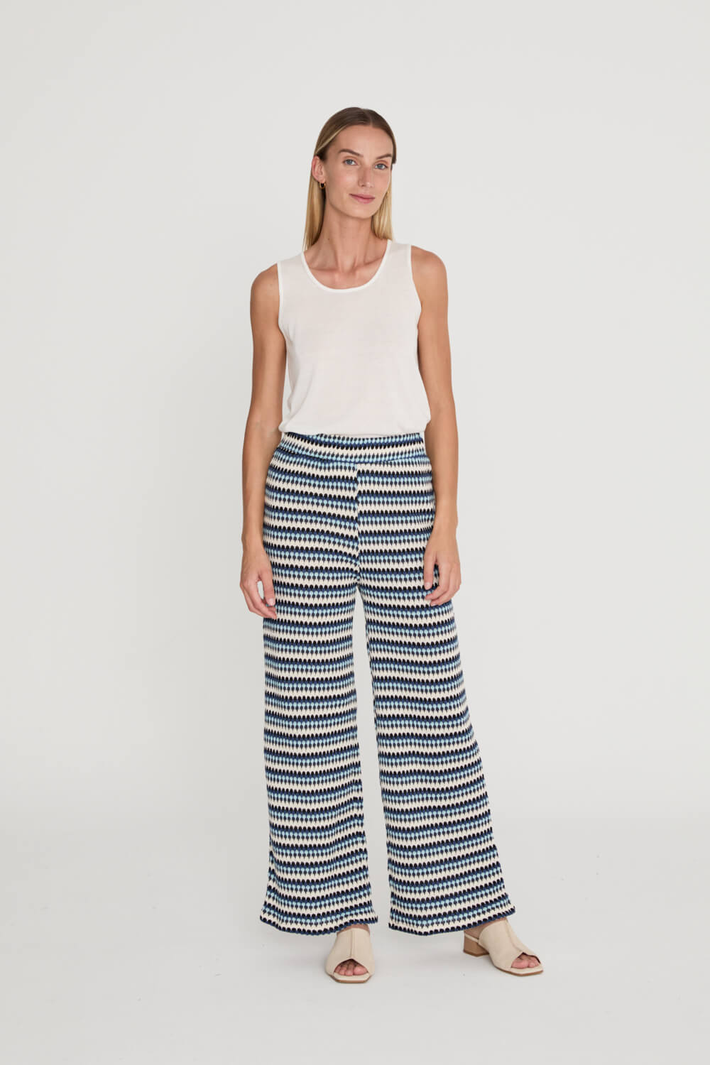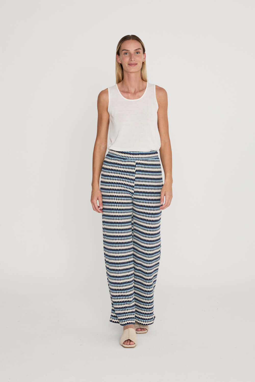 Pantalon Designers Society Lasdun en tonos azules, con tejido de malla especial y cintura de goma.