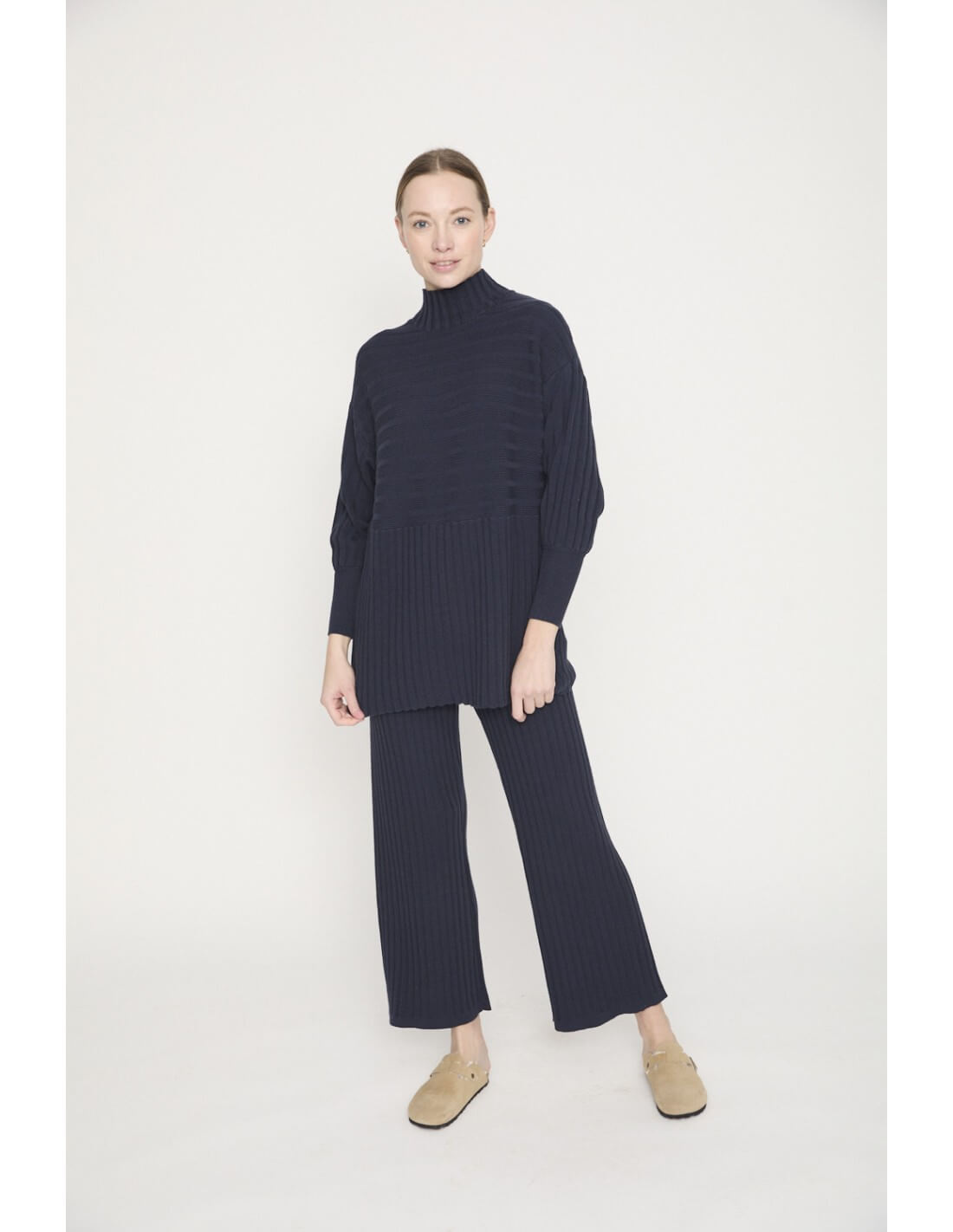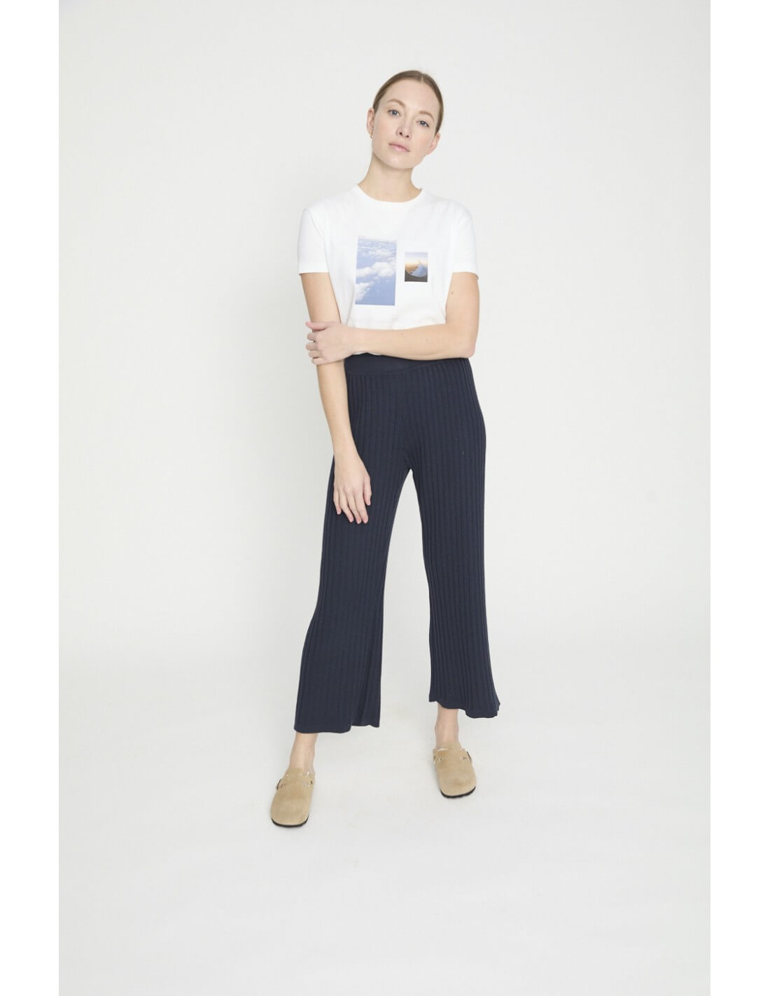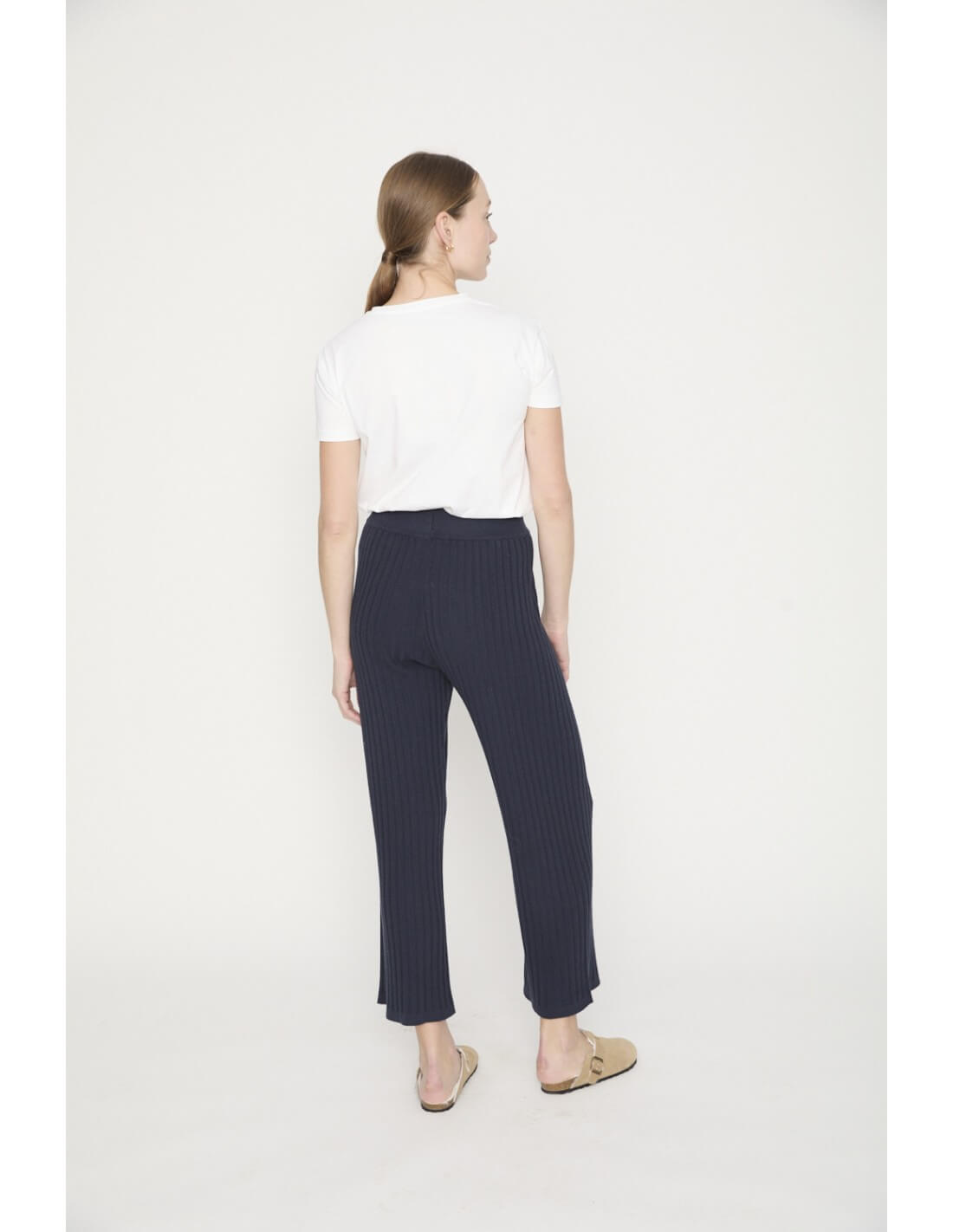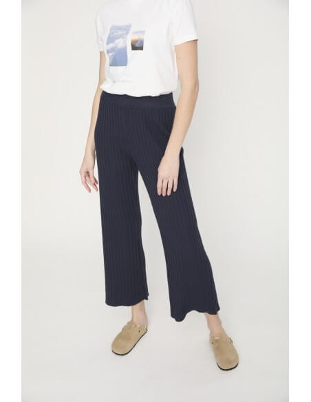 Pantalón Designers Society Ridav en color marino de tiro alto y goma en la cintura.