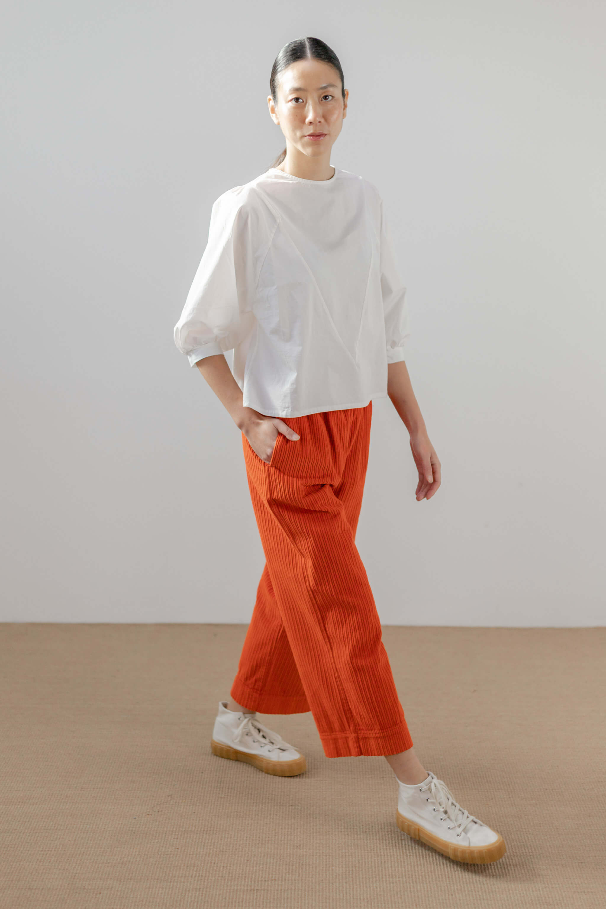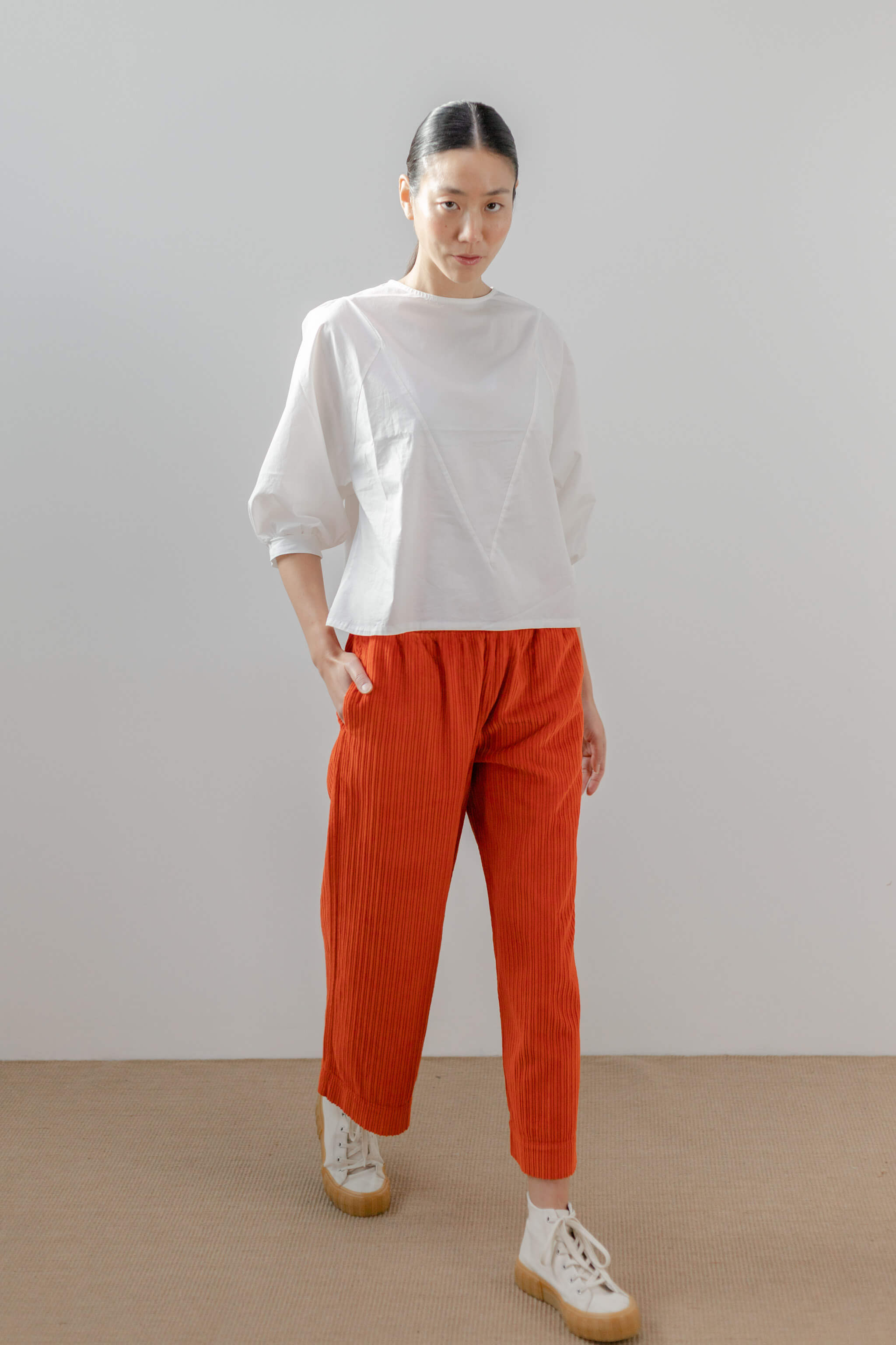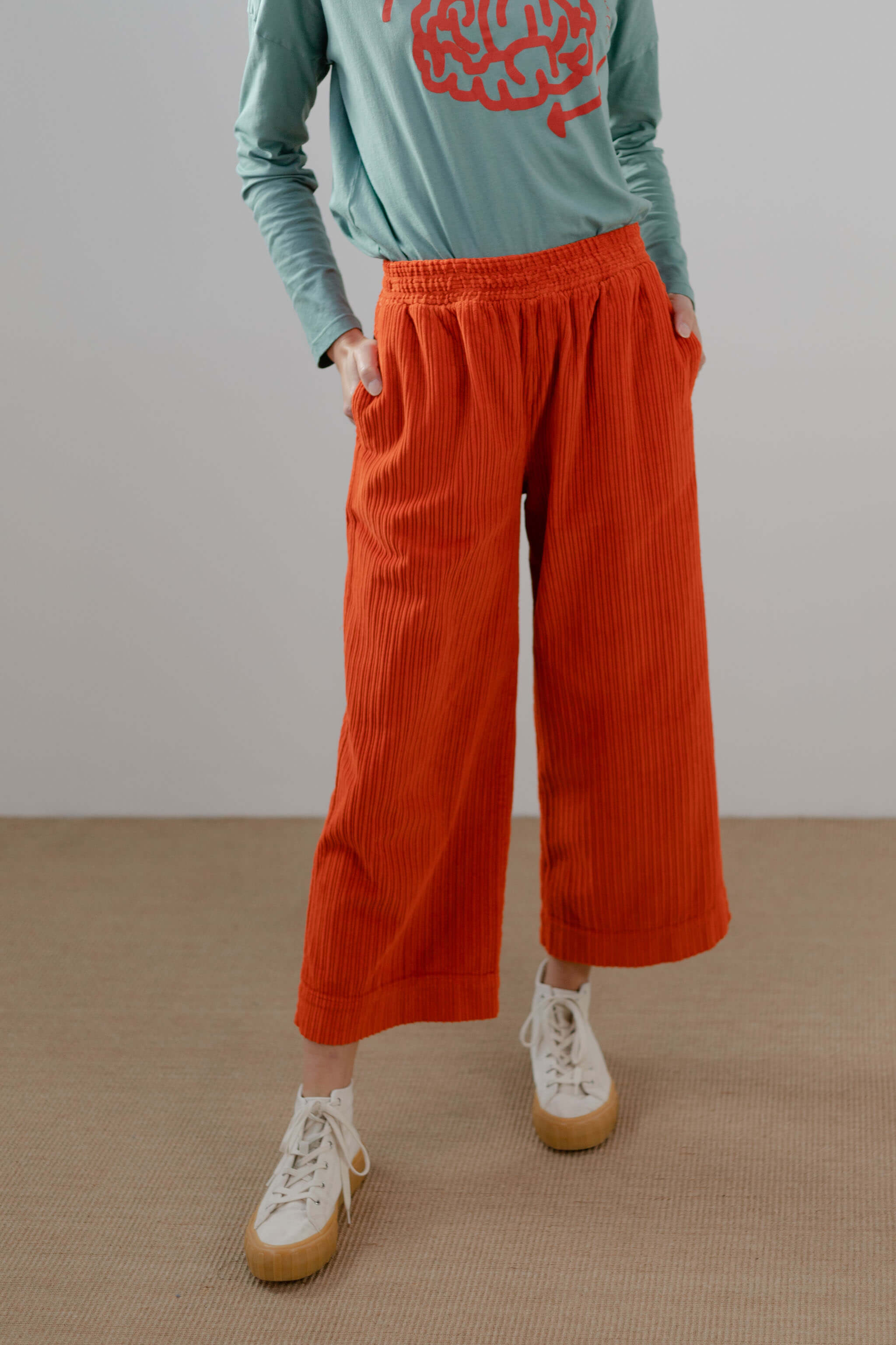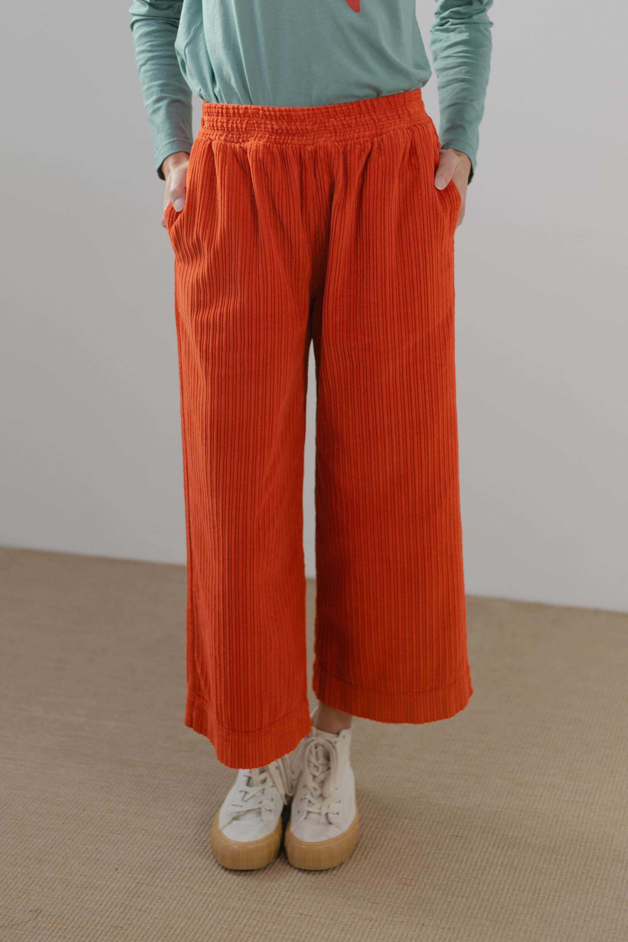 Pantalón Pan Producto Basico de pana en color naranja.