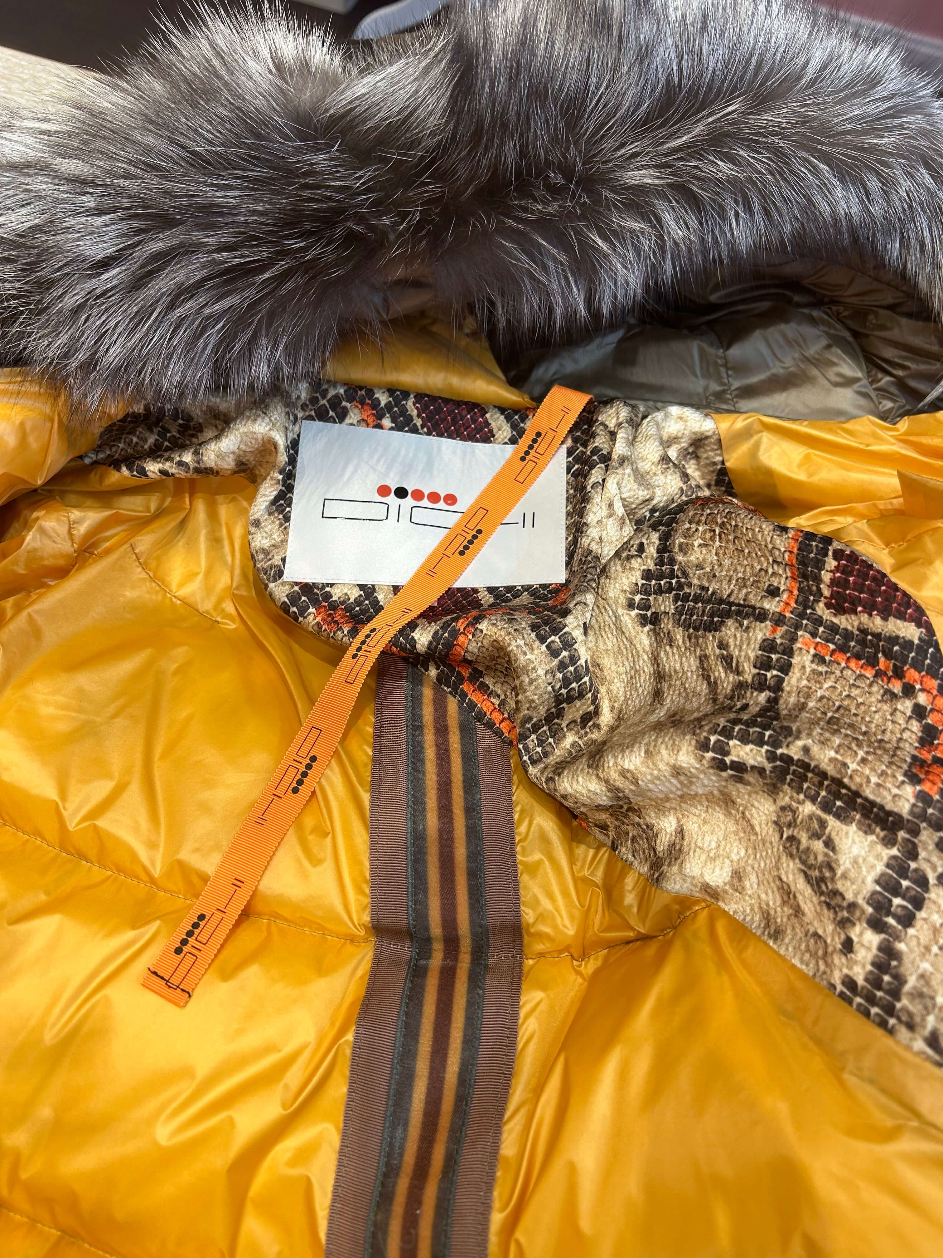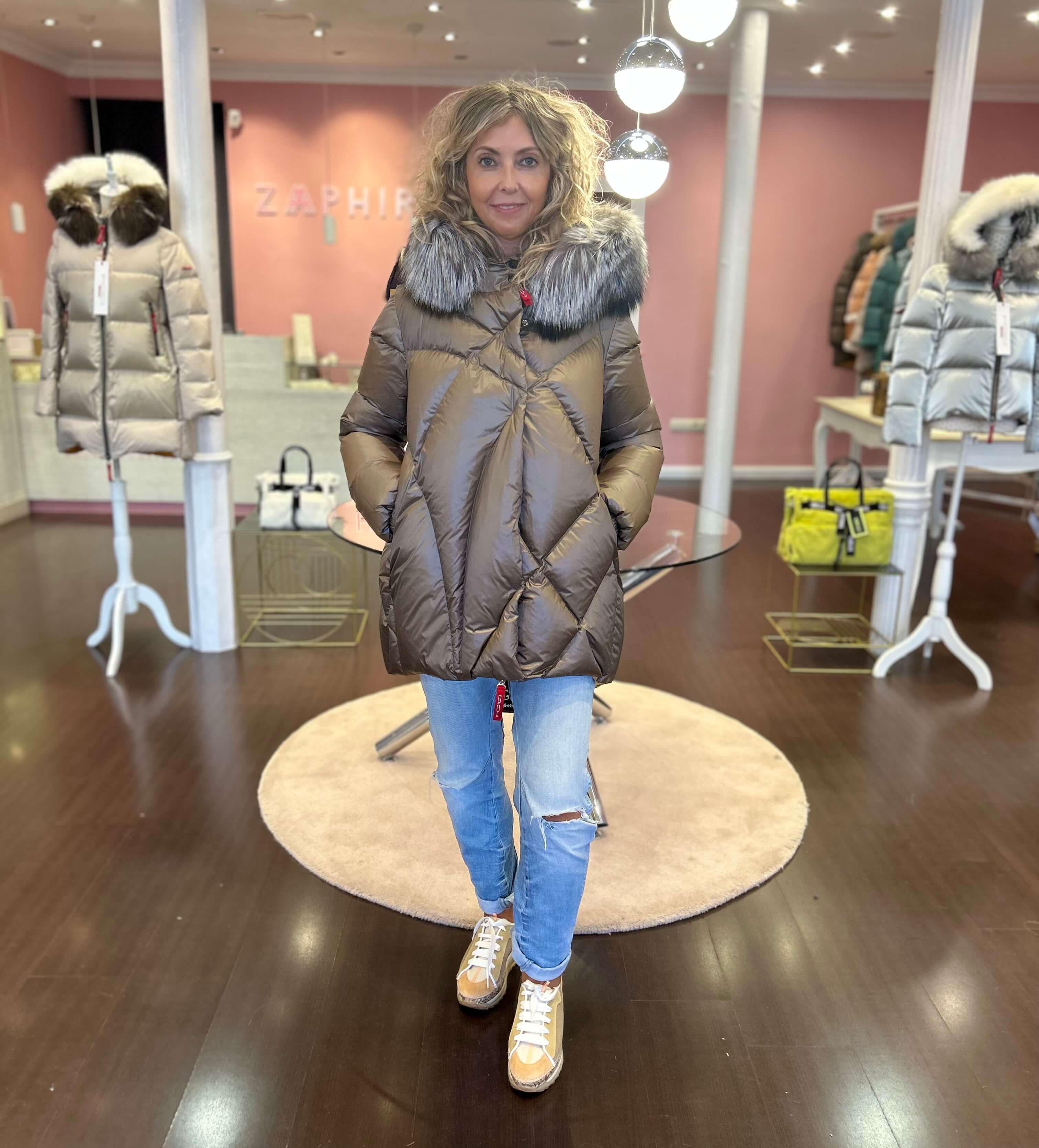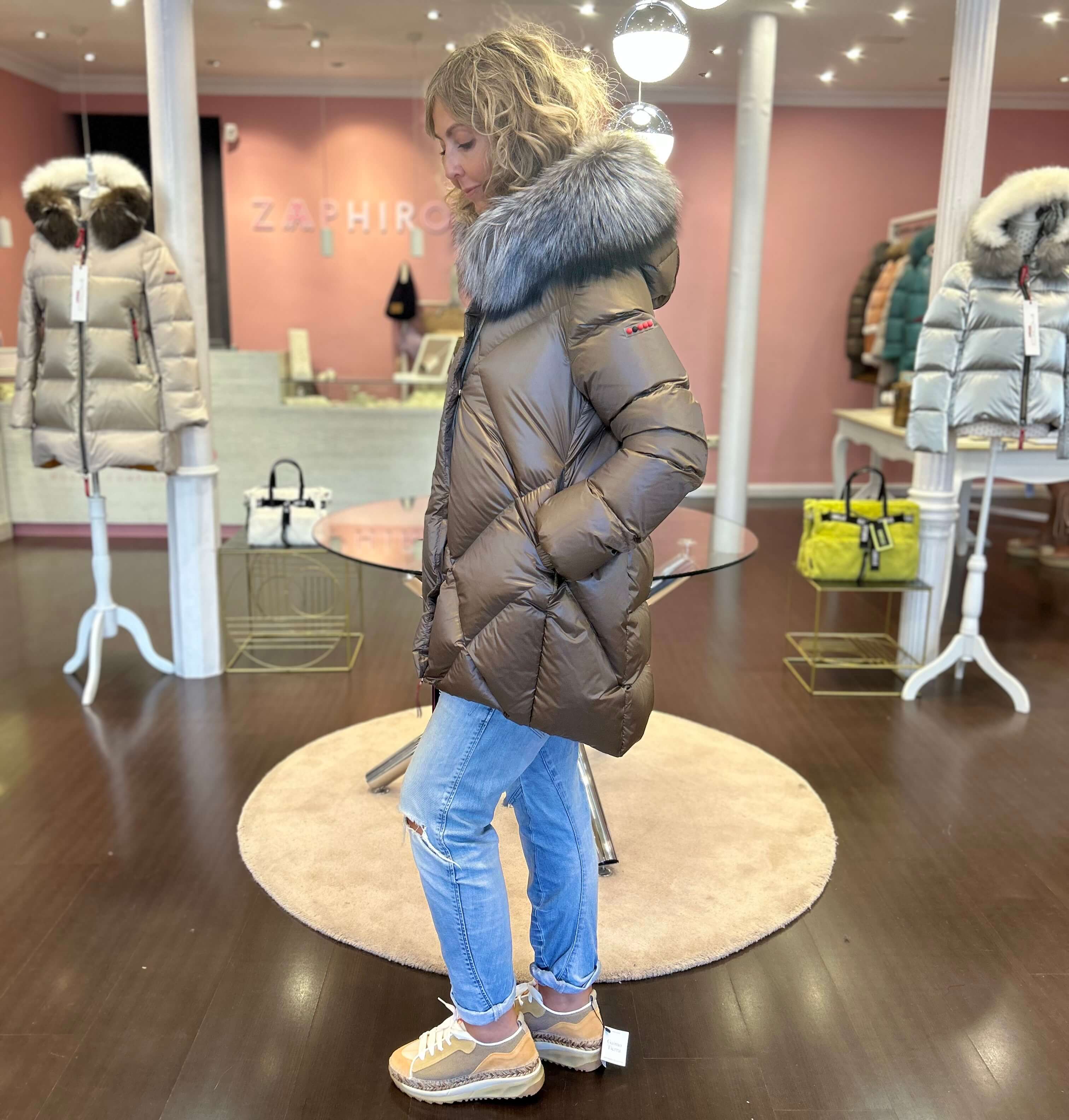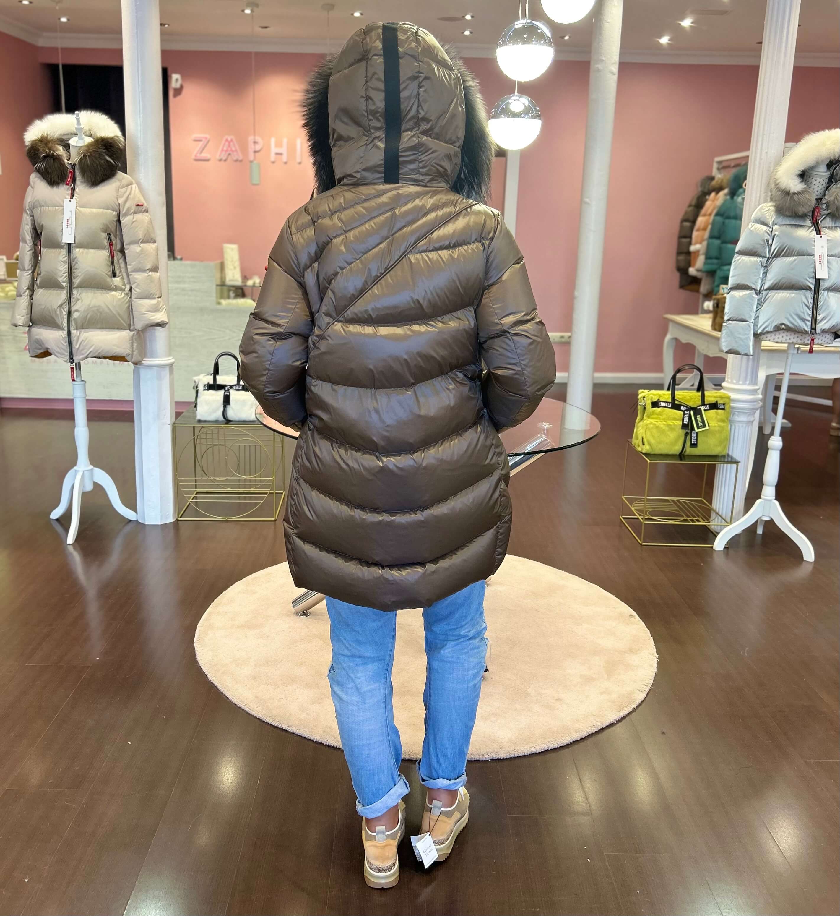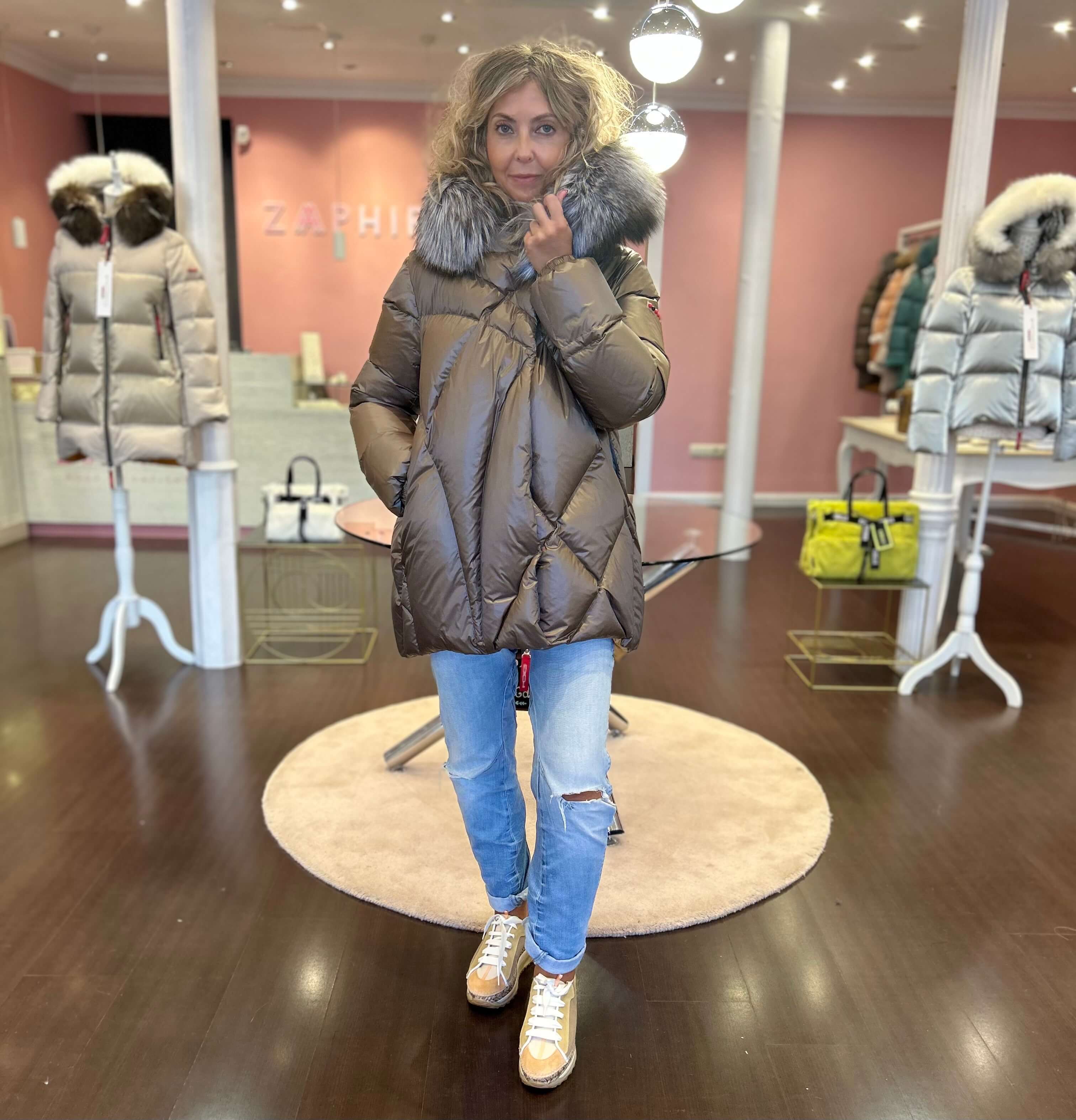 Plumífero Dichi Salena en color kaki con pelo natural. El plumífero Dichi Salena es cómodo y cálido como todos los abrigos Dichi mujer.