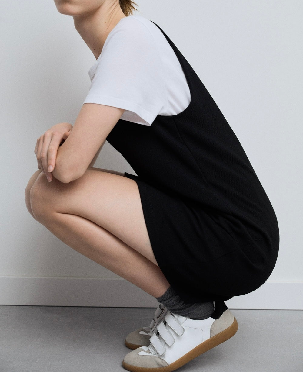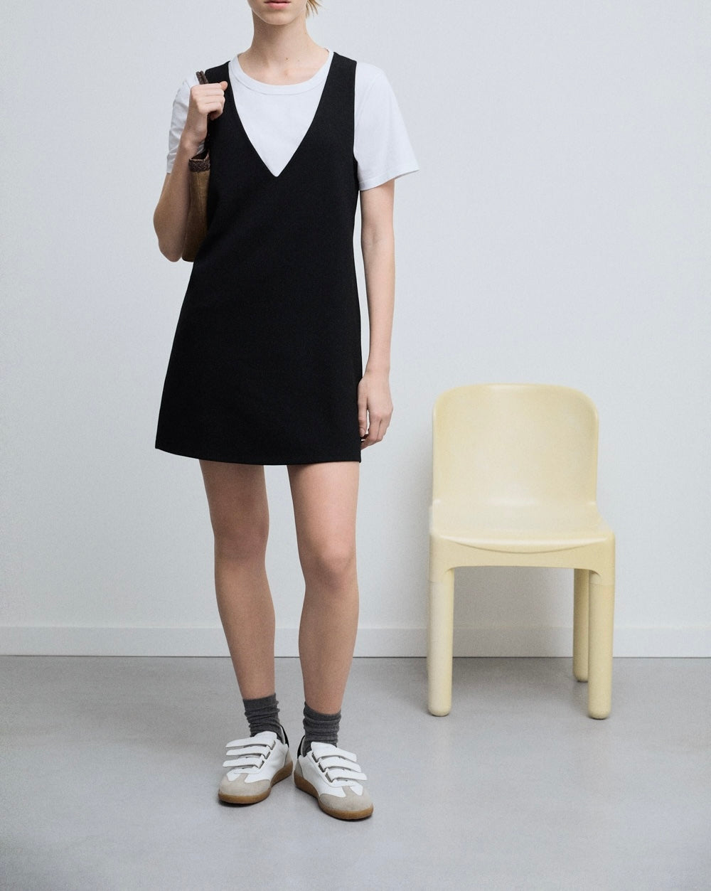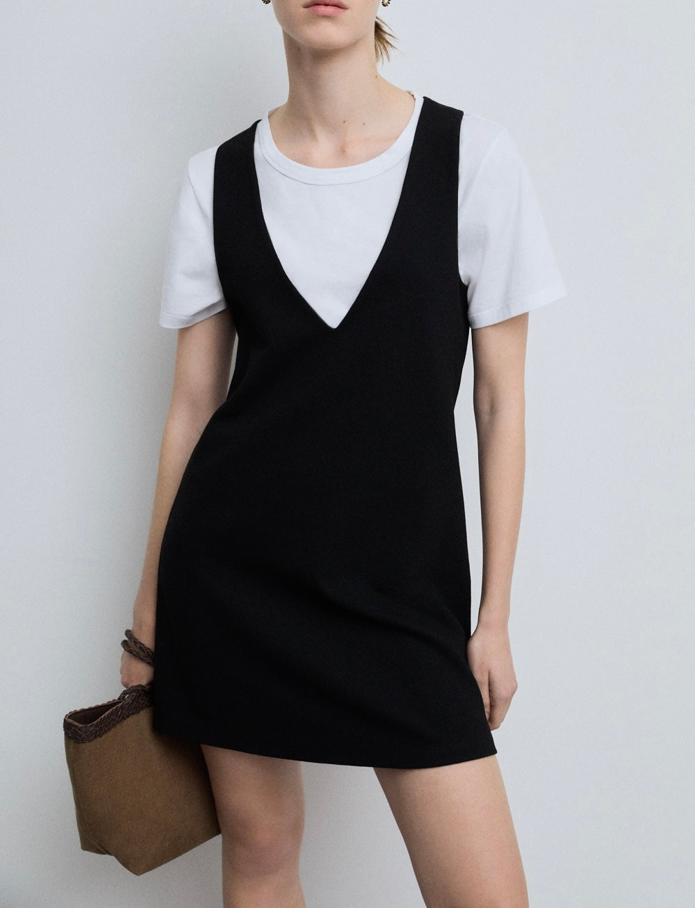 Vestido eseOese Pichi mini negro con escote pico y tejido efecto sarga.