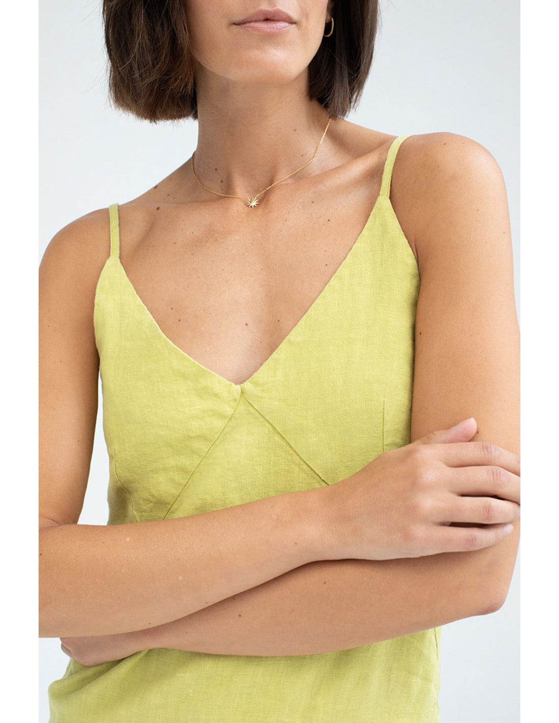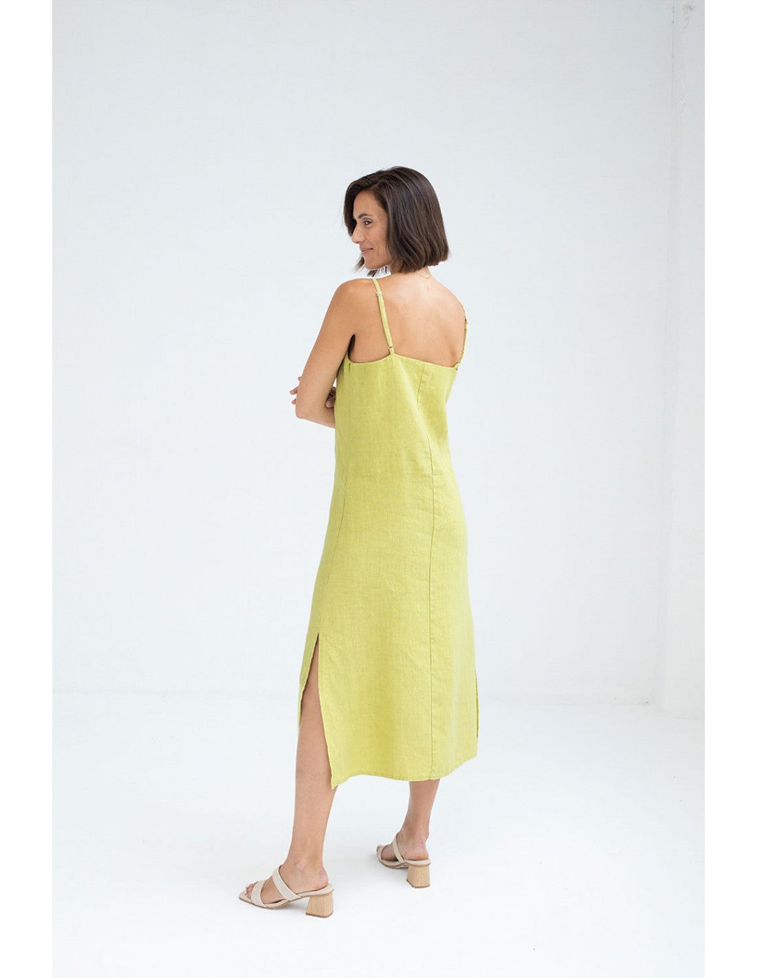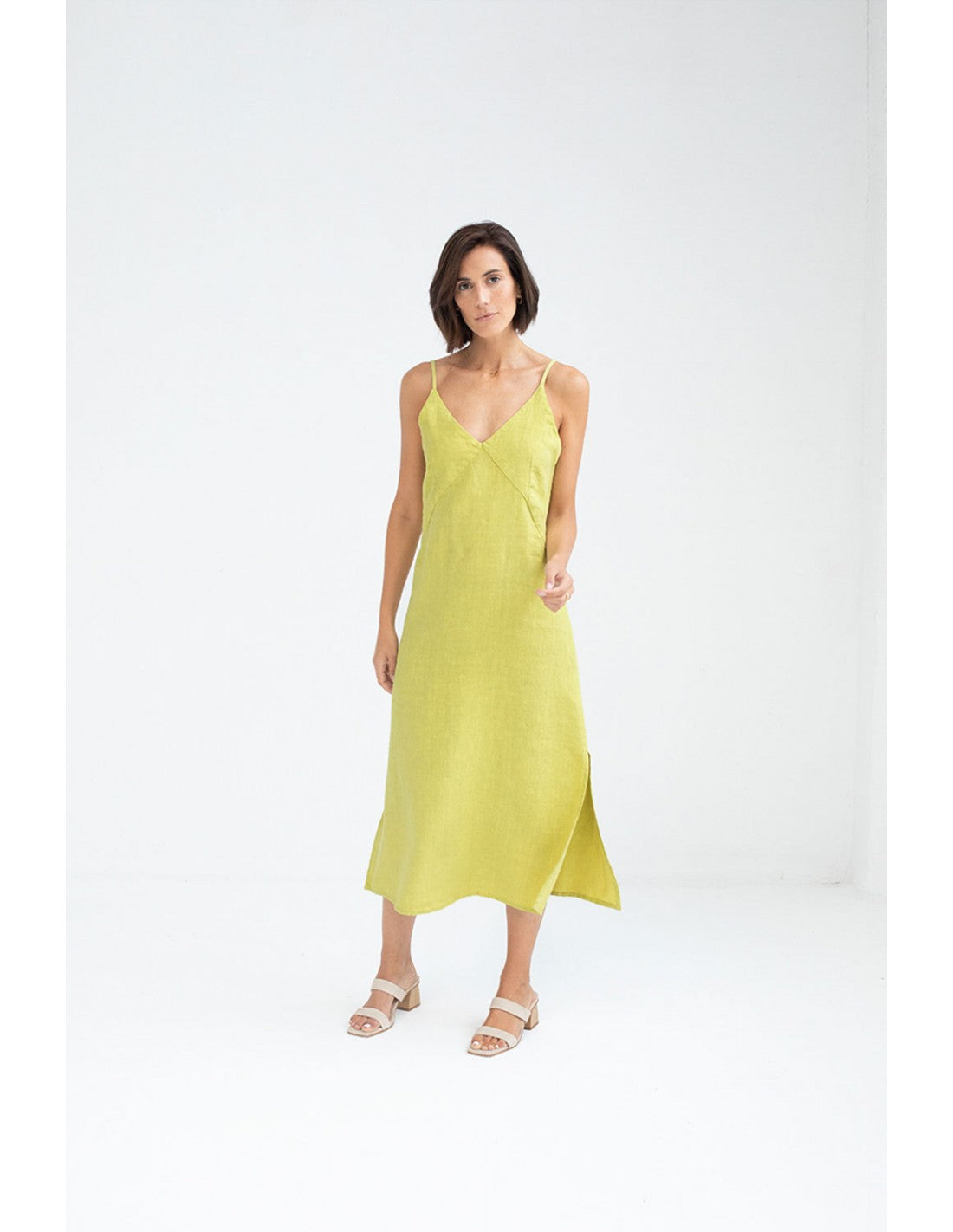 Vestido Mus&Bombon Pitarak en color lima y tirante fino.
