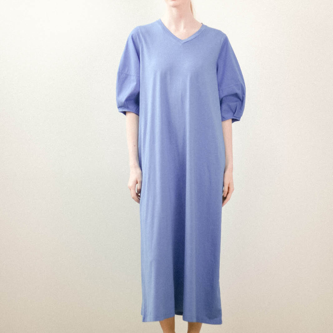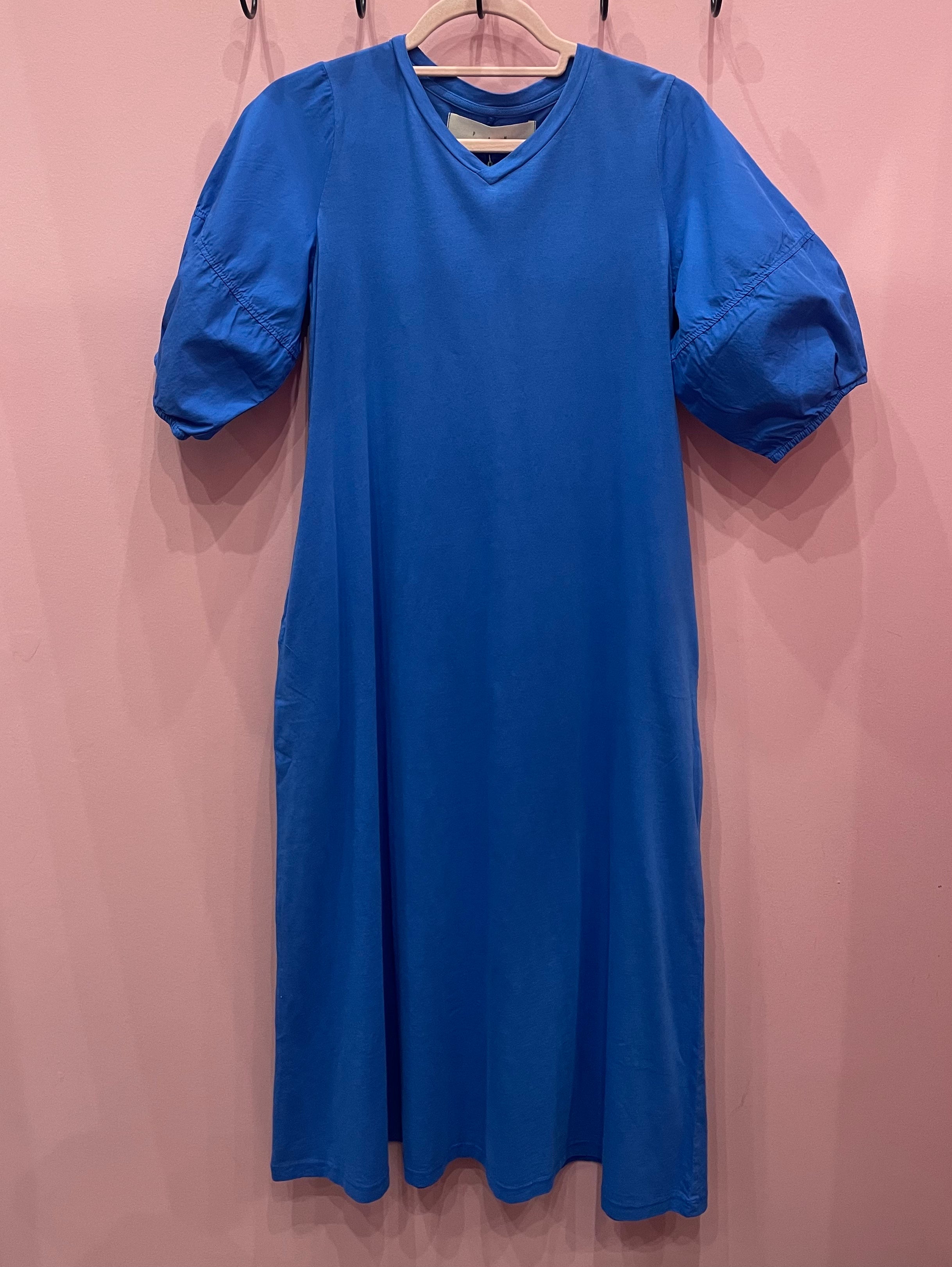 Vestido Pan Producto Basico en color azul con distinto tejido en mangas.