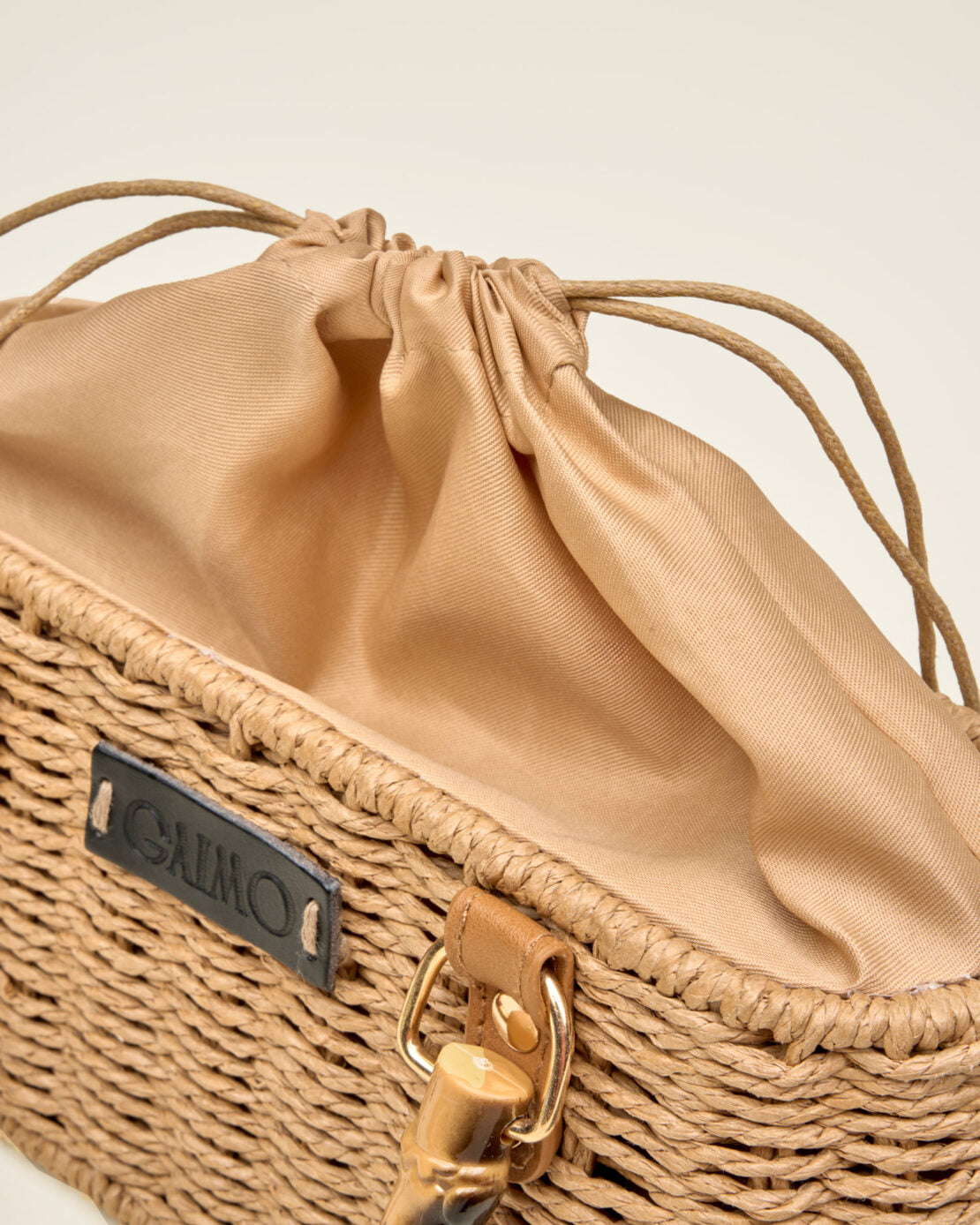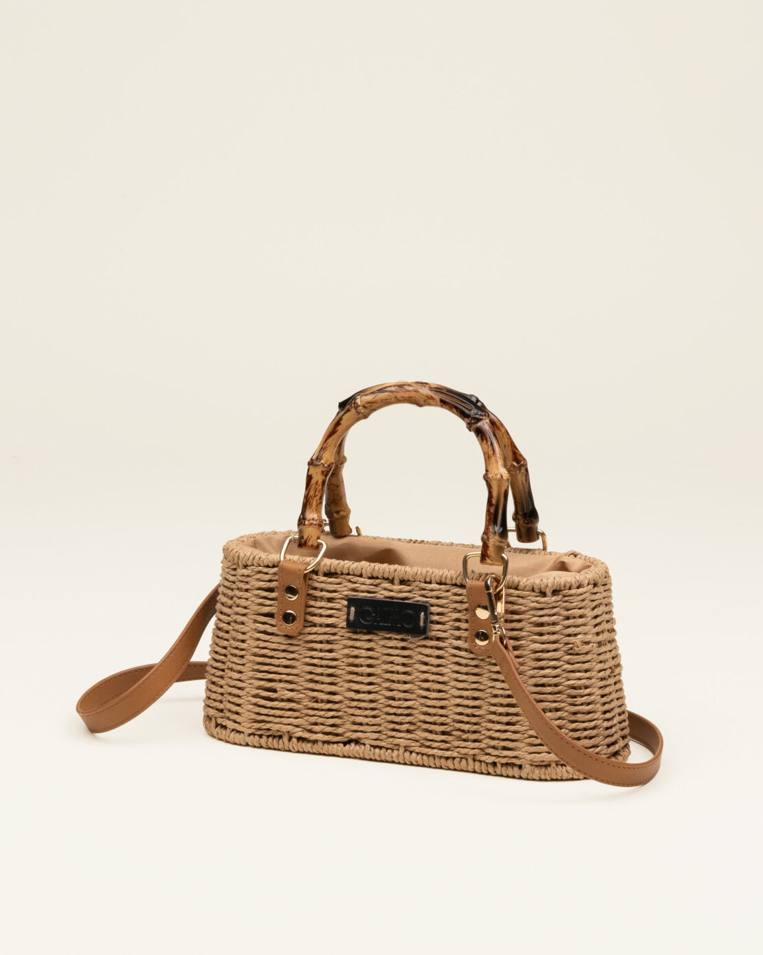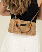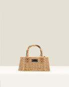 Bolso GAIMO Box en rafia, rígido con asa corta efecto bambú y asa bandolera