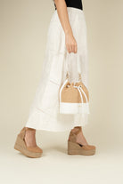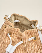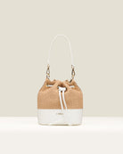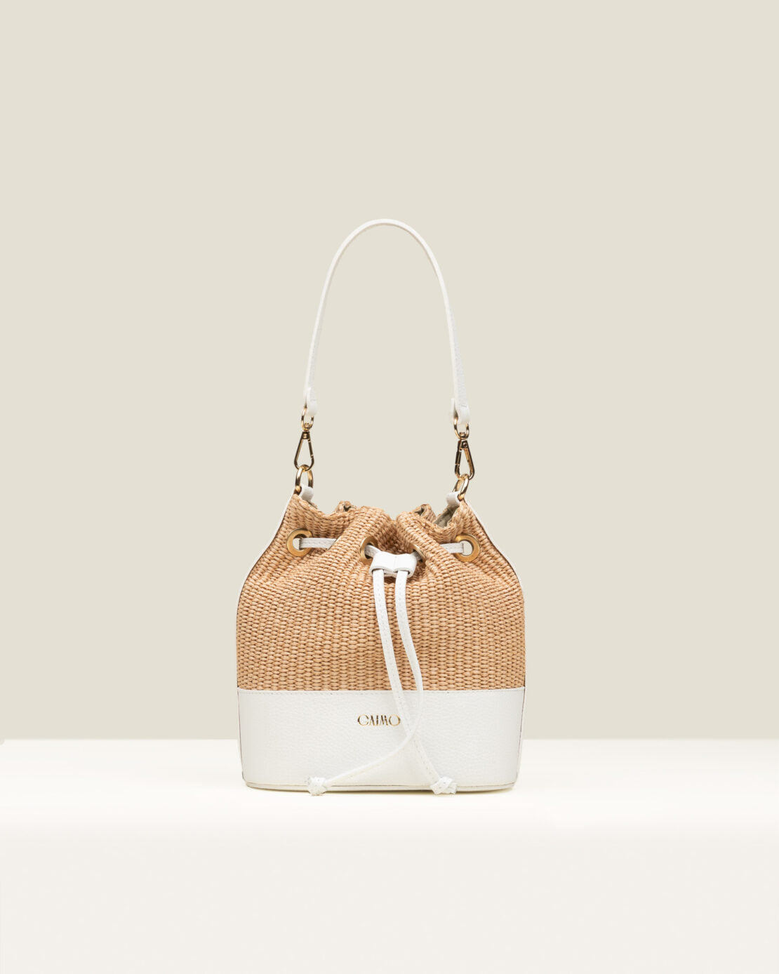 Bolso GAIMO Blanco tipo saco en rafia y piel blanca, con asa también para bandolera