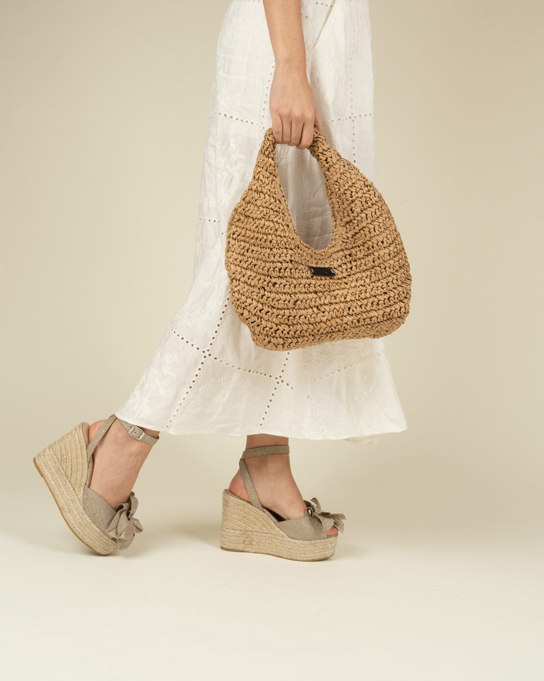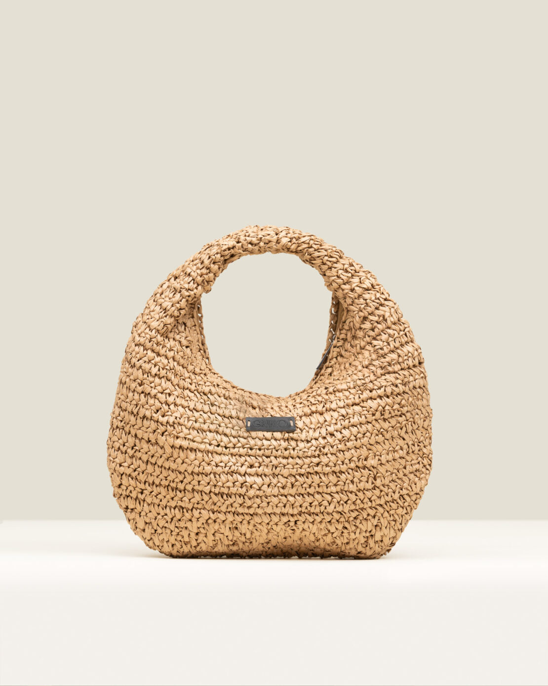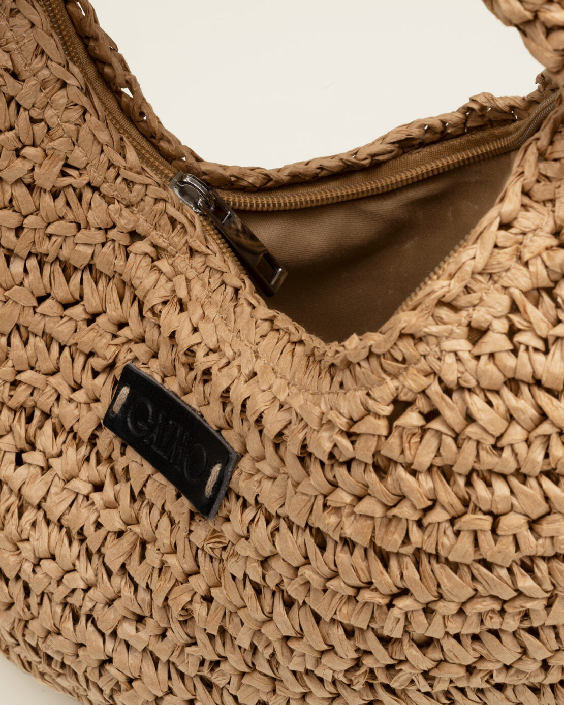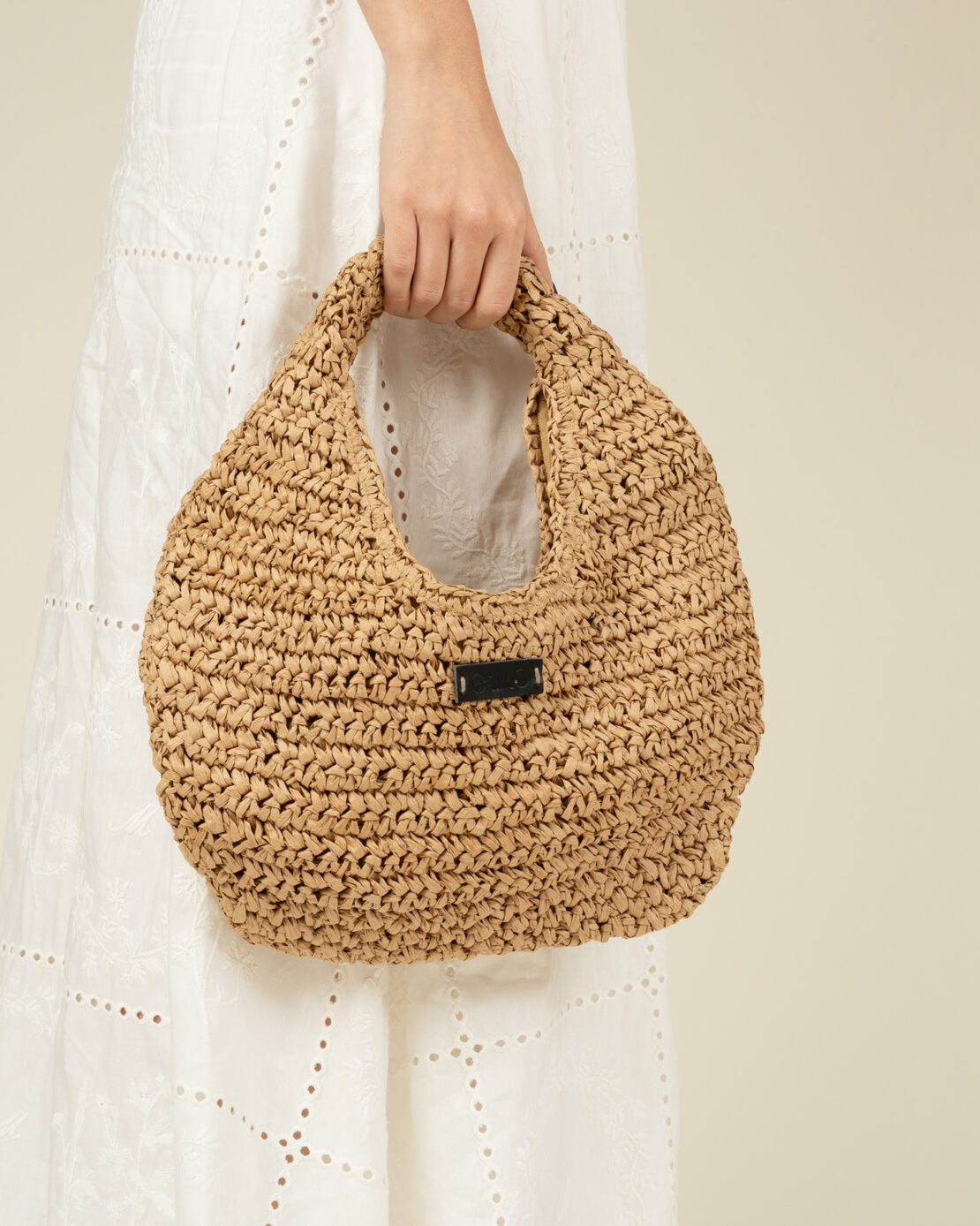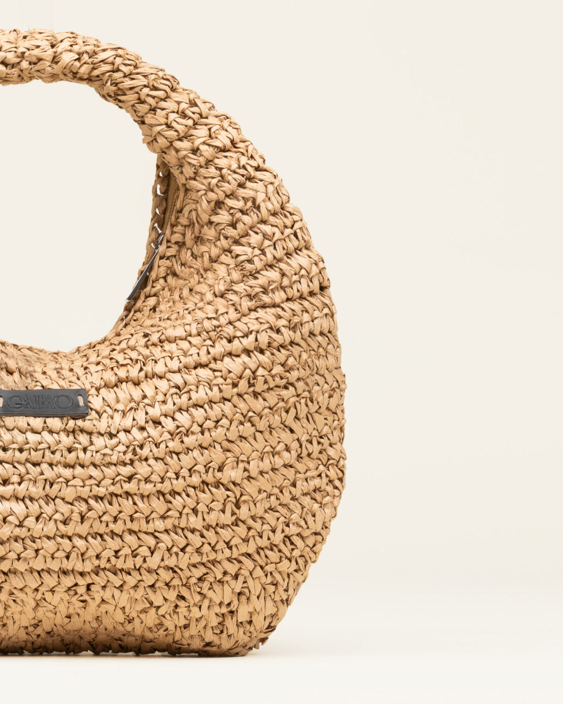 Bolso GAIMO Redondo de mano en rafia natural y con cierre de cremallera