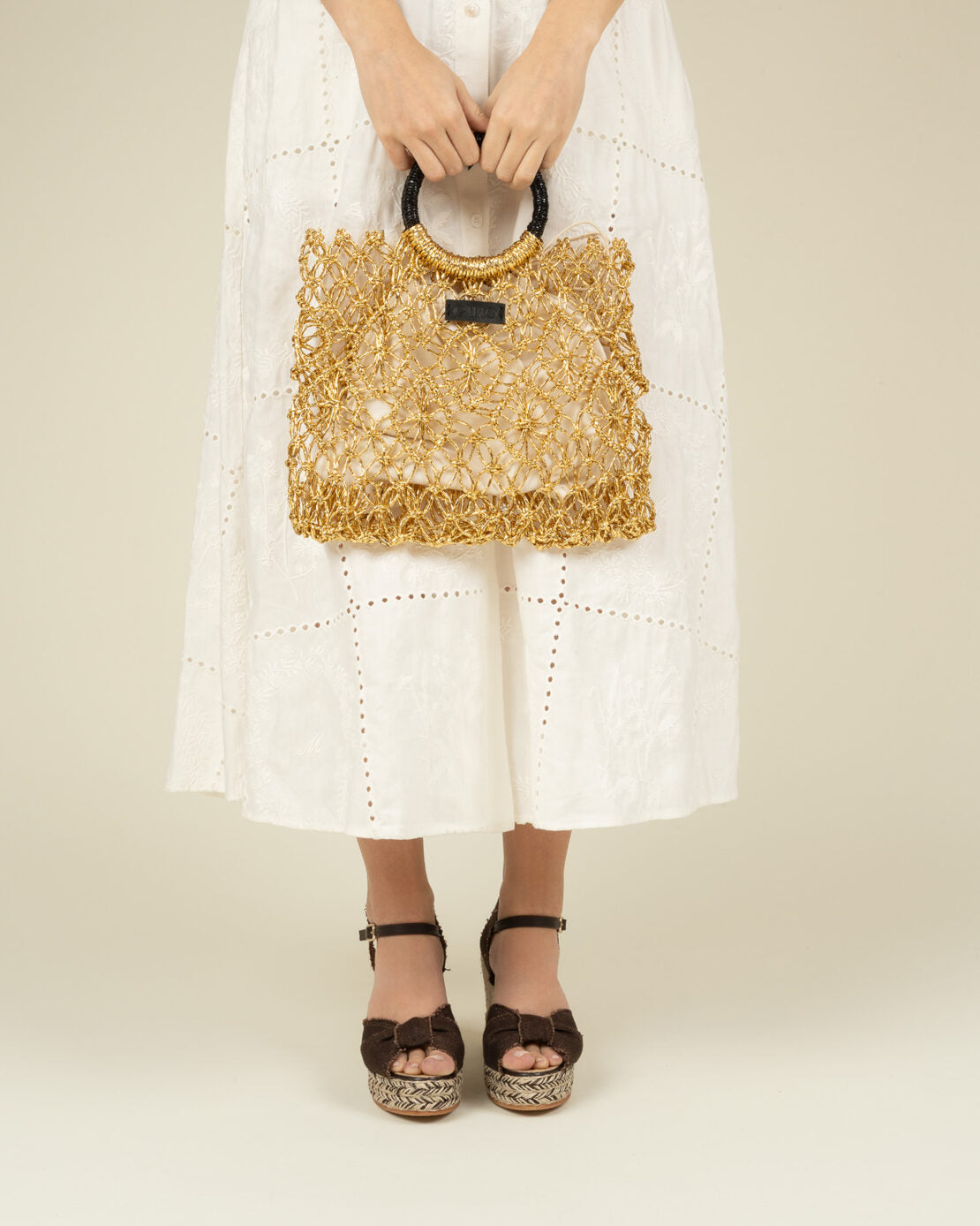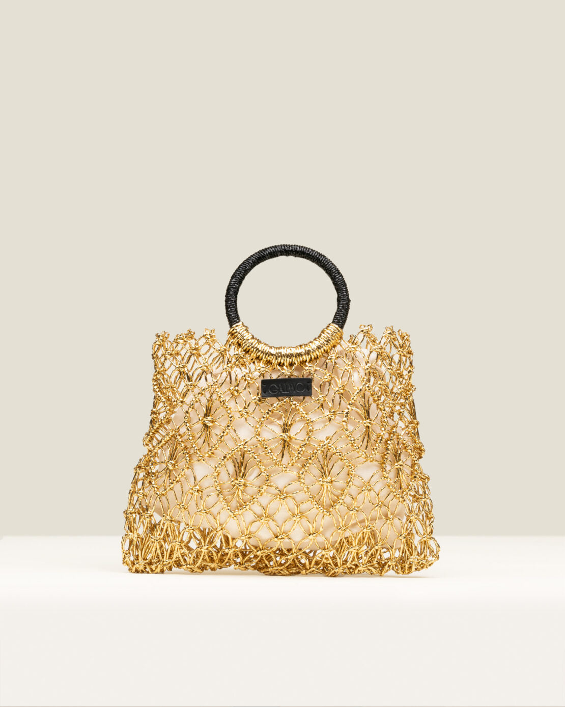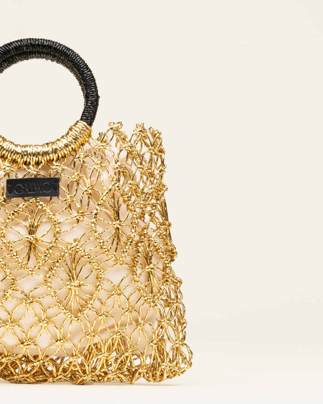 Bolso GAIMO Sombra de crochet metalizado dorado y asas en negro