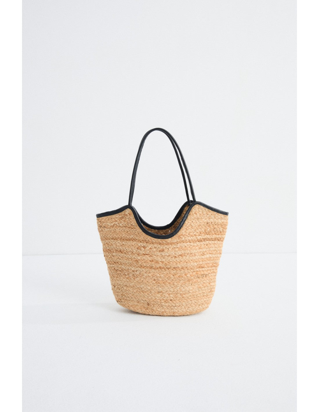 Bolso MUS&BOMBON Kai de rafia con asas de piel en color negro.