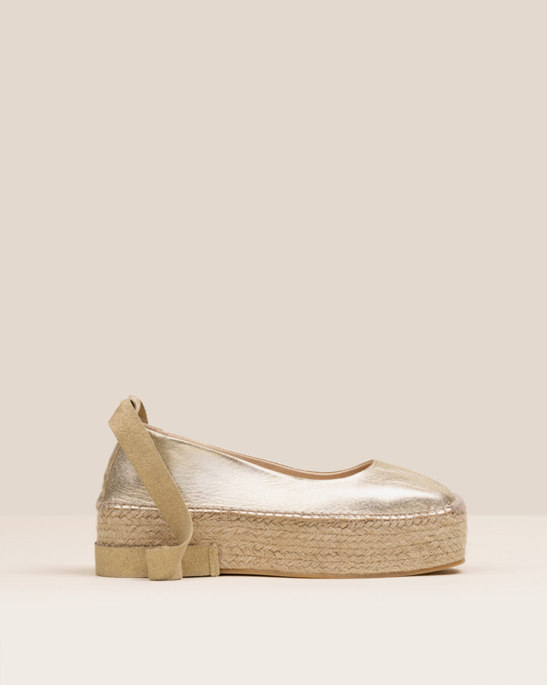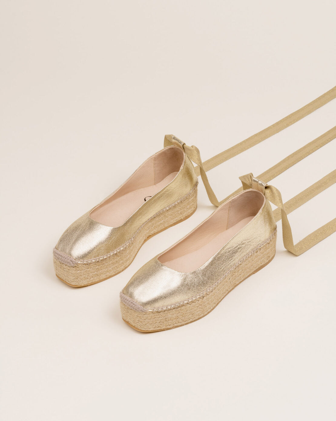 Bailarina GAIMO Mitsy de piel dorada metalizada con cintas decorativas