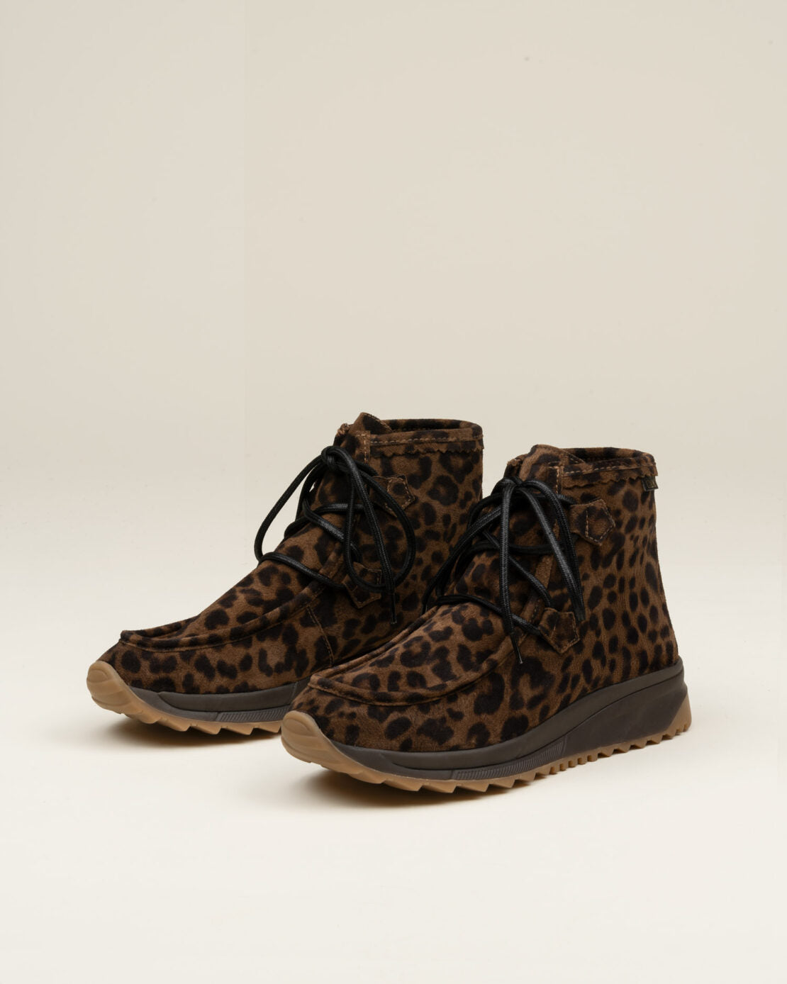 Botines GAIMO Marcel en piel con estampado leopardo, cordones ajustables y suela de goma deportiva.