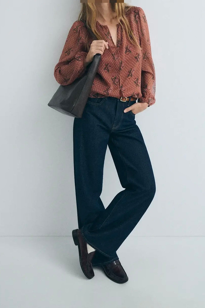 Blusa eseOese Dorothy de bambula con estampado de flores y manga abullonada con goma en los puños.