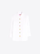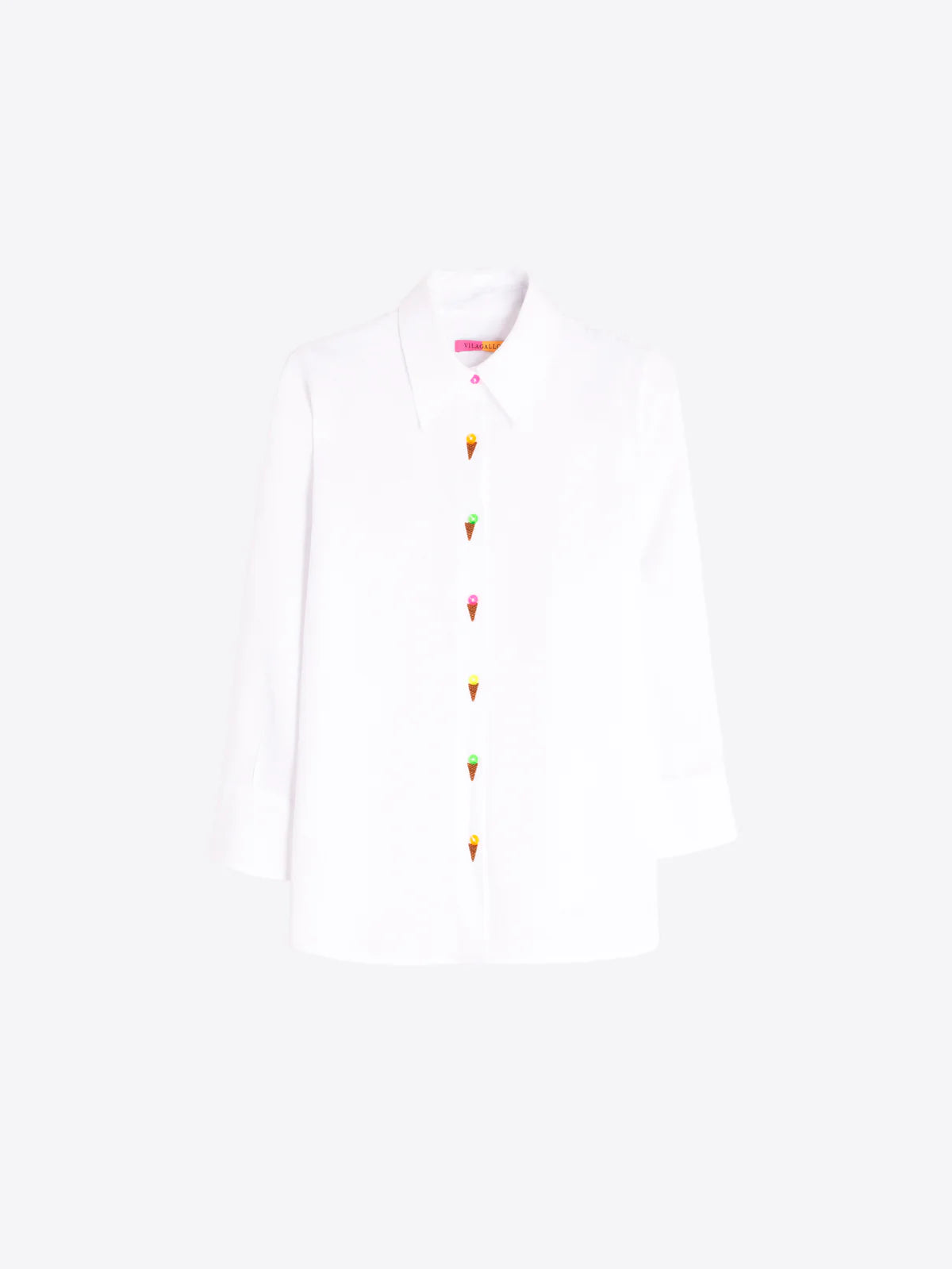 Camisa VILAGALLO Helados blanca de lino con botones de colores y detalle de helados bordados.