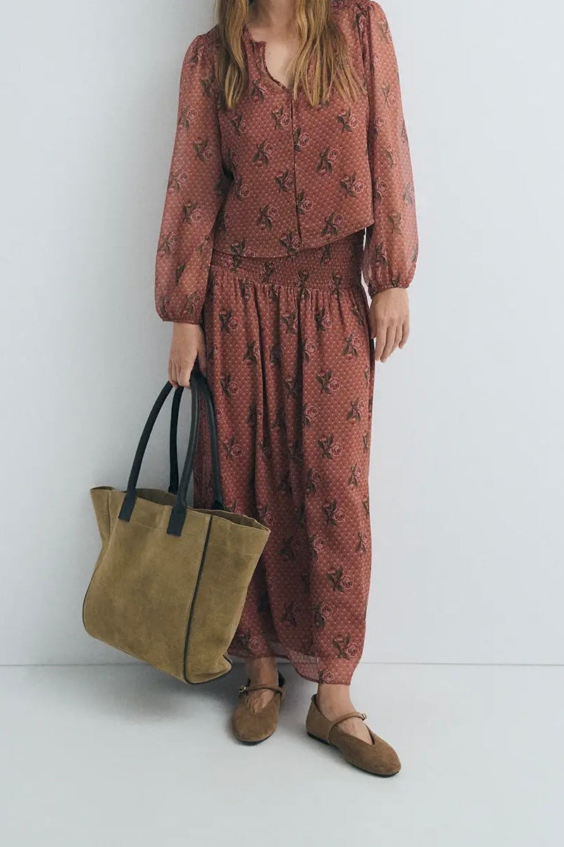 La falda eseOese es una prenda original que puedes combinar con la blusa para crear un total look.