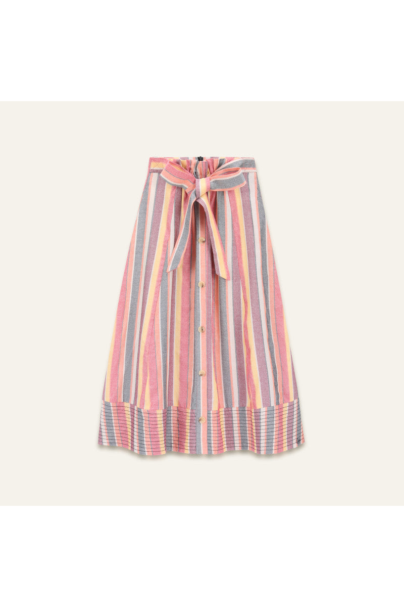 Falda ORFEO Anycia midi de rayas multicolor y cintura marcada.