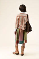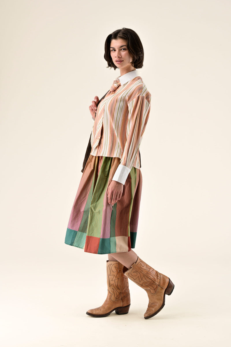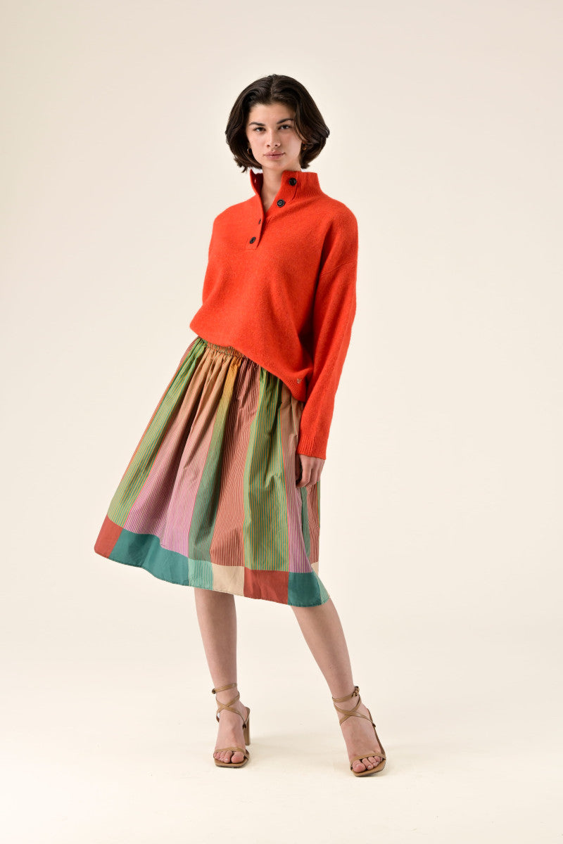 Falda ORFEO Audine midi de rayas multicolor y cintura elástica.