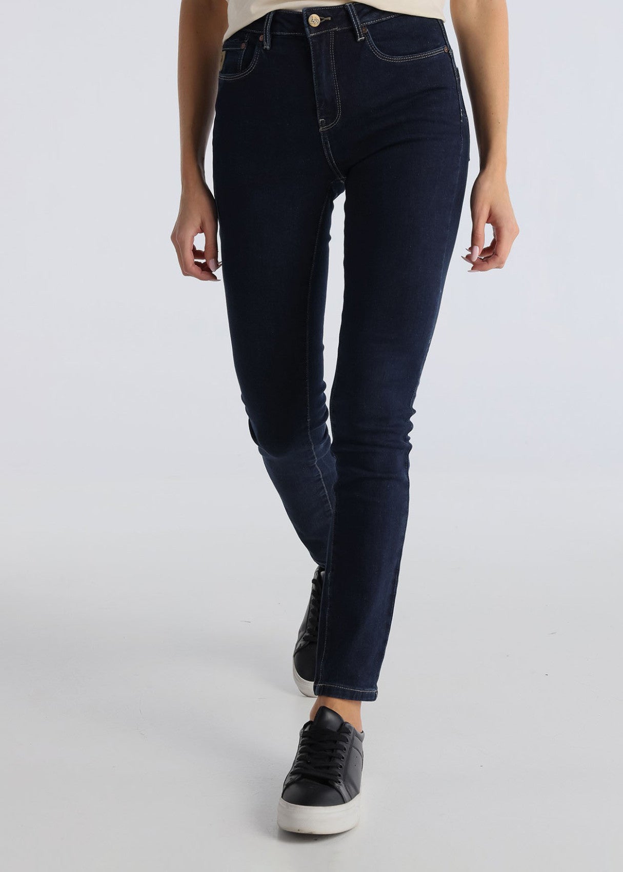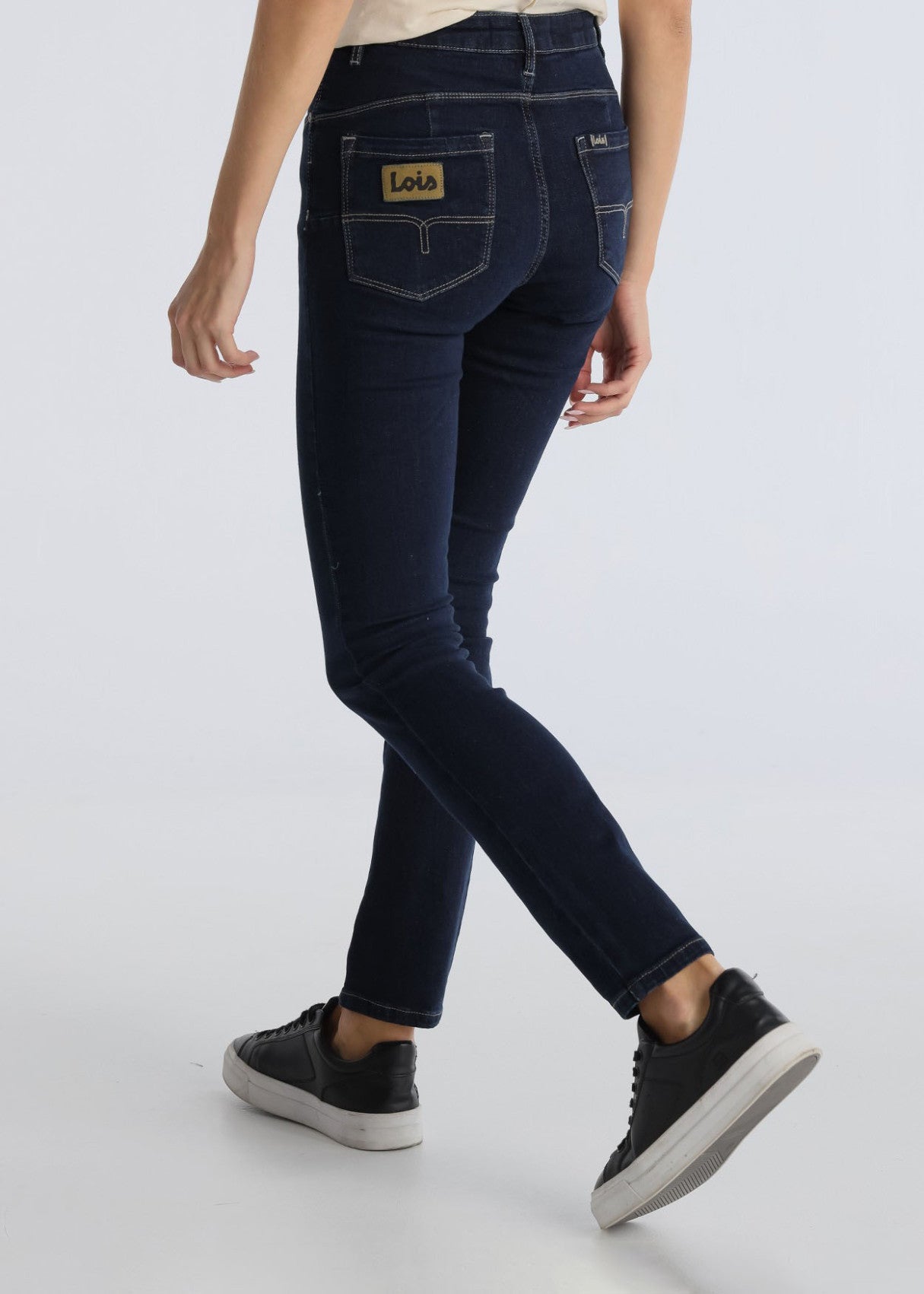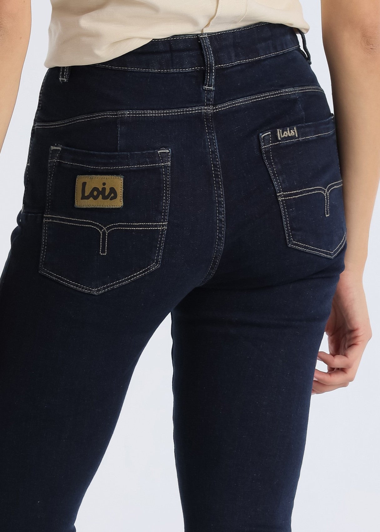 Jeans LOIS push up y skinny, con tiro corto que resalta la figura, y en color azul oscuro