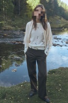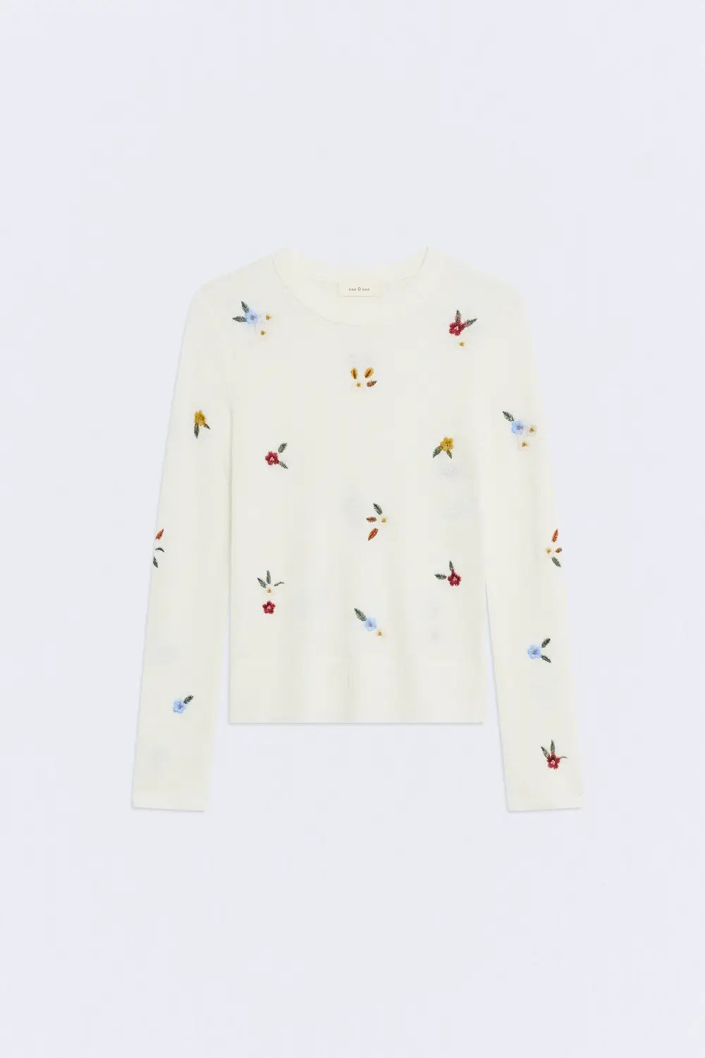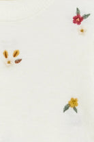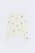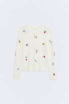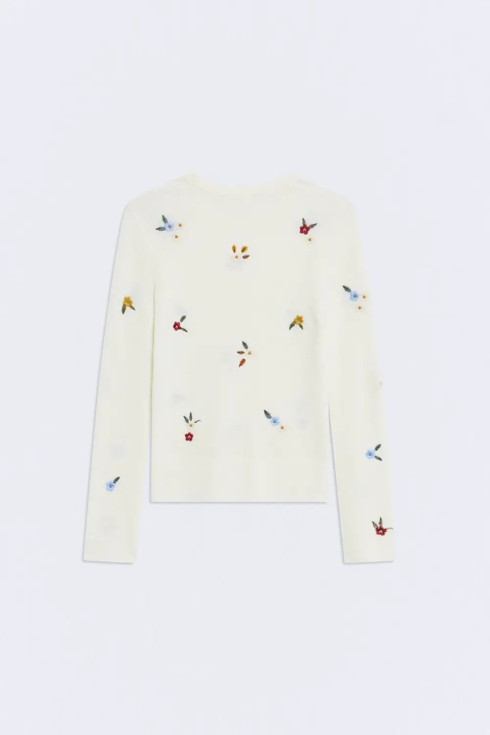 Jersey eseOese Florence con mezcla de lana y punto perlado, en color crema con flores multicolor.