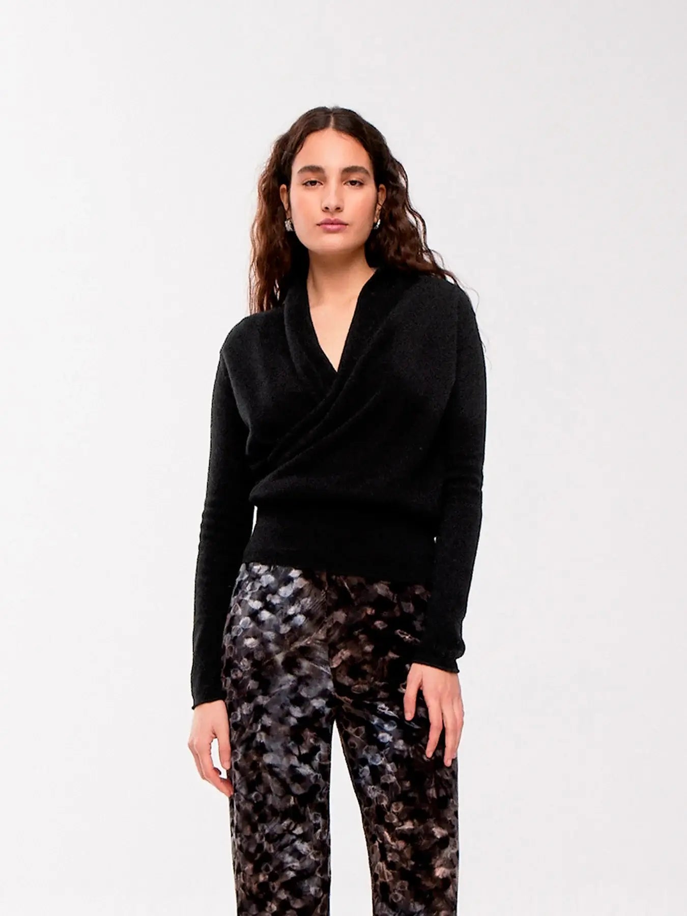 Jersey Mioh Warren efecto chaqueta en negro con escote a pico.