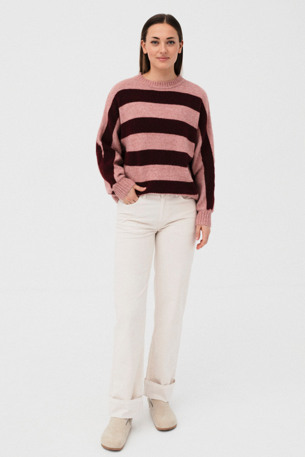 Jersey MUS AND BOMBON Iturrama en color granate a rayas con manga japonesa.