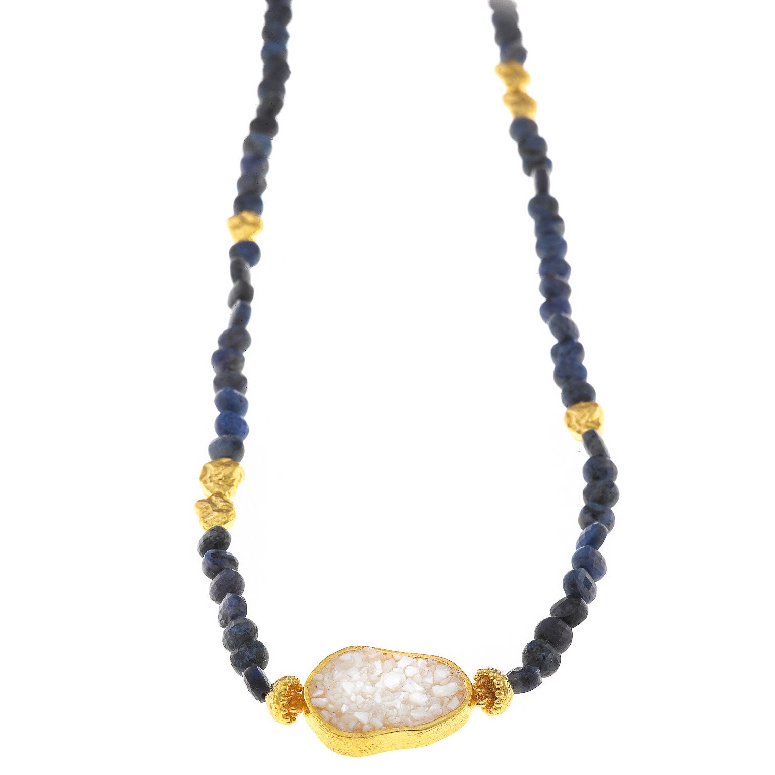 Collar SALVATORE PLATA 163CM004 en metal dorado chapado con piedra blanca mate en el centro y piedras en azul