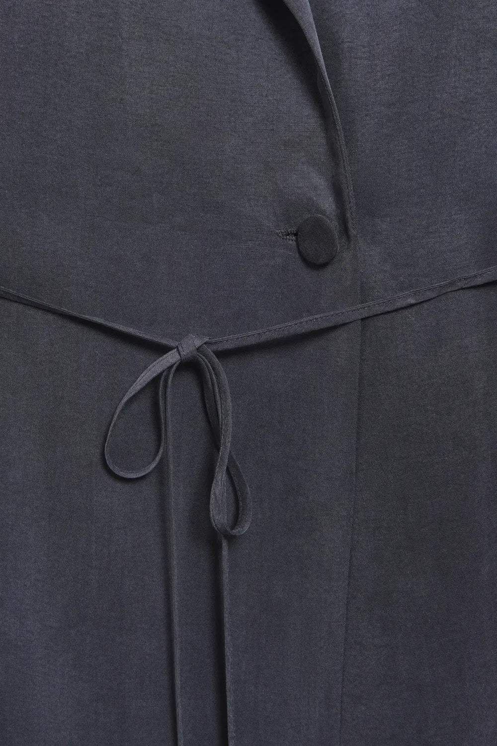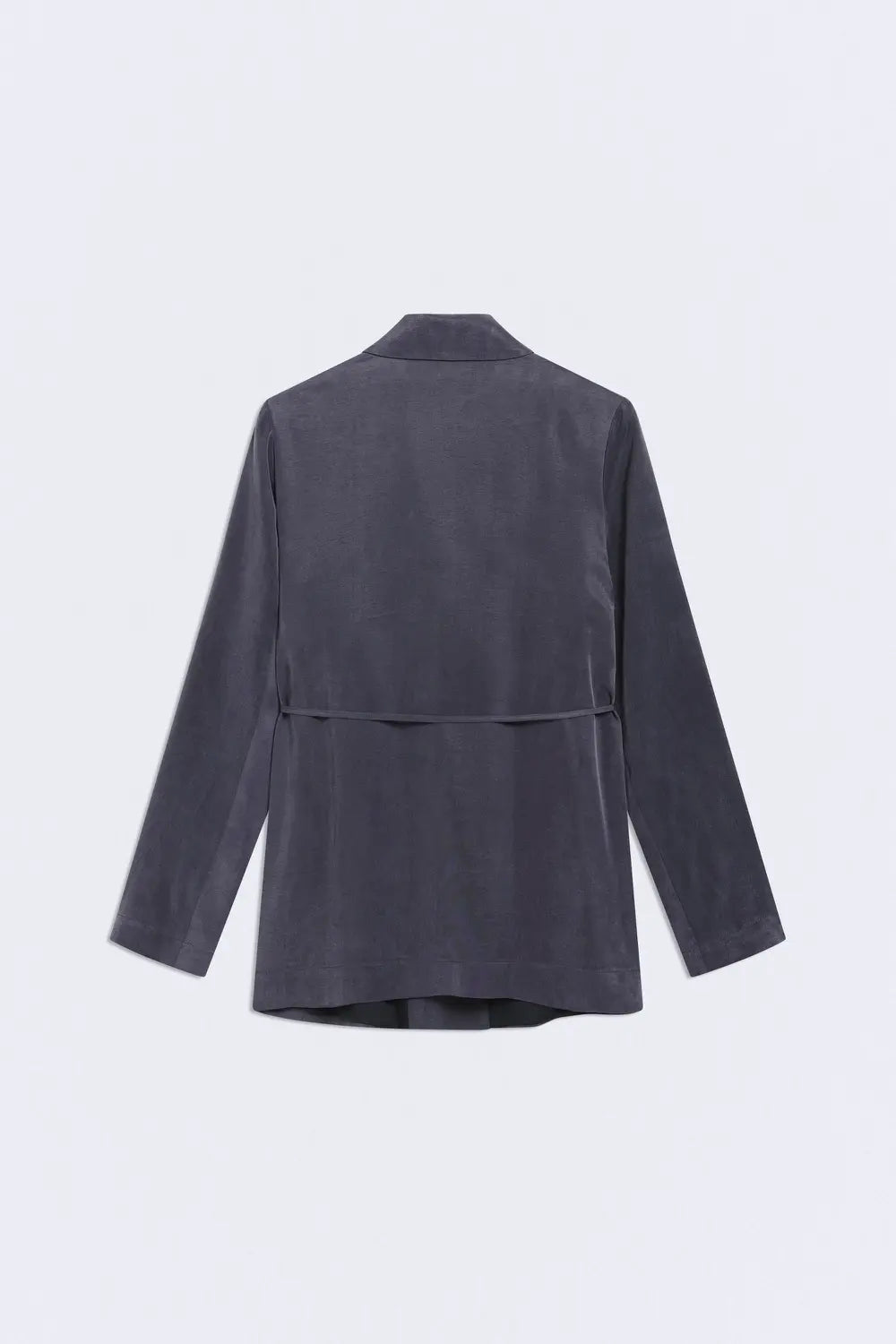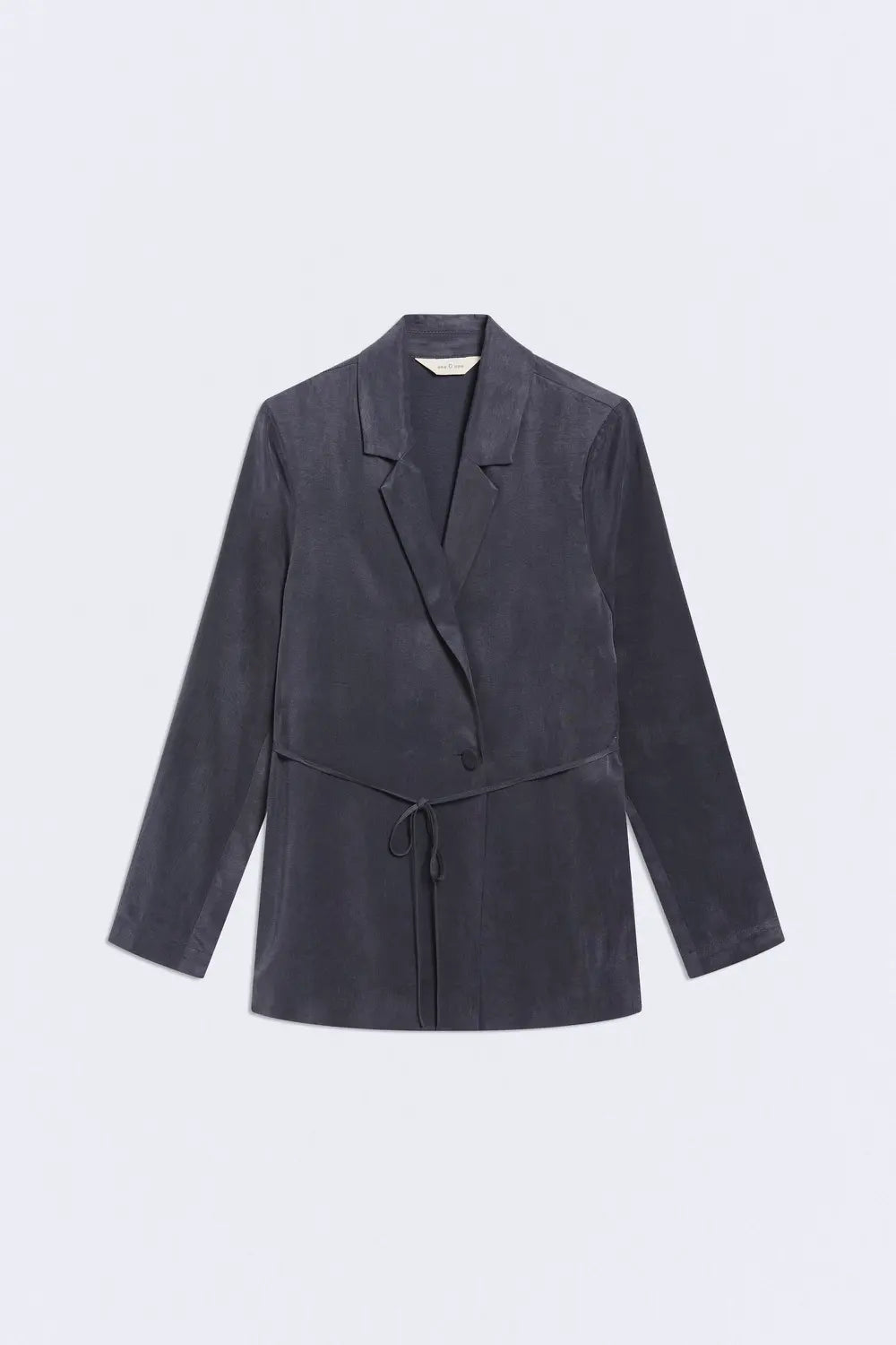 Blazer eseOese Cannes en color azul ahumado, con tejido mezcla tencel y viscosa, y cinturón