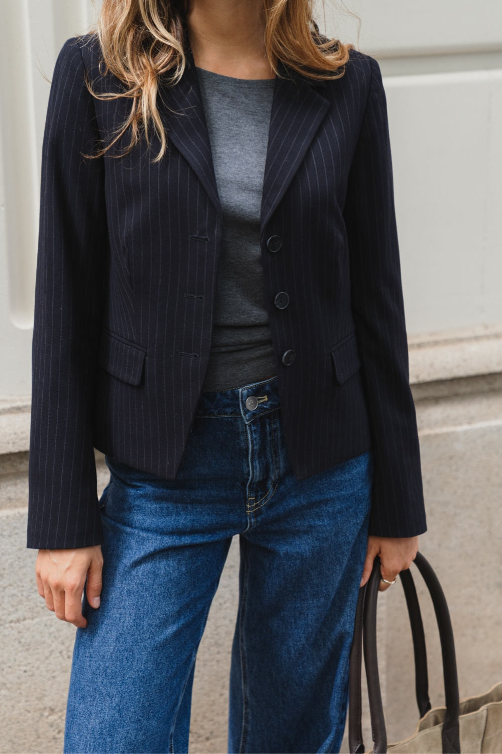 Blazer eseOese Chicago entallada con raya diplomática en color navy.