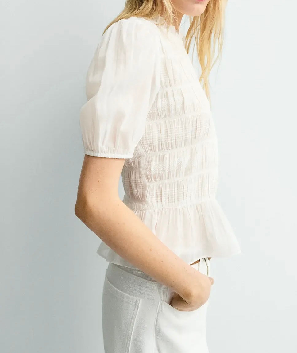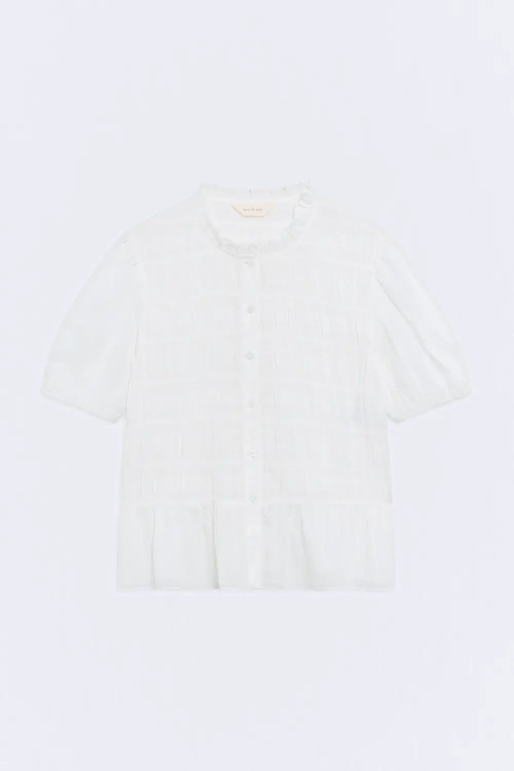 Camisa eseOese Therese en color blanco con manga abullonada y volante en el bajo.