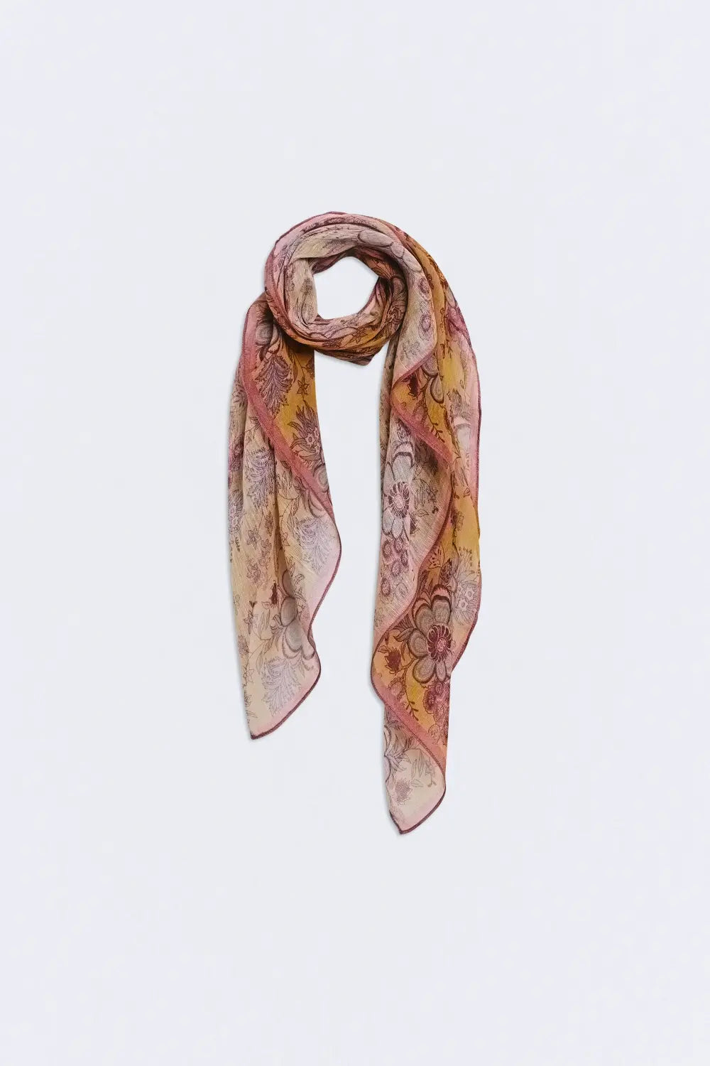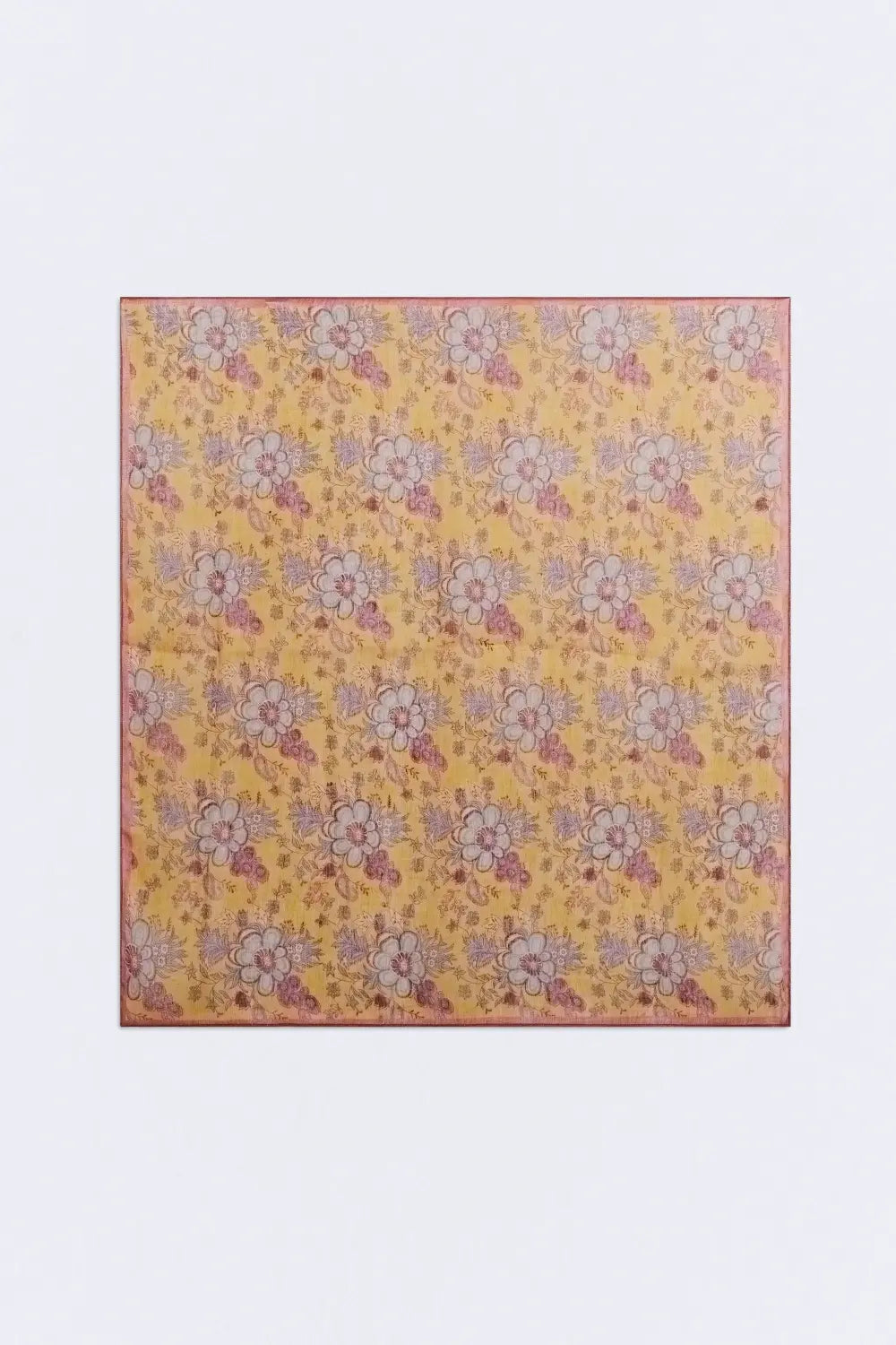 Fular eseOese Flowers de lino con estampado de flores sobre fondo azul