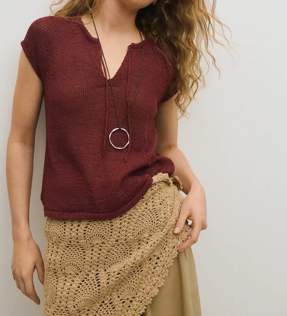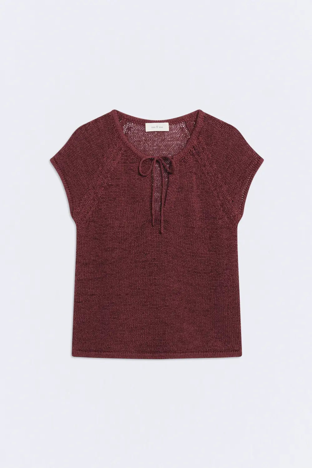 Top eseOese Emeu en color burdeos de punto, y escote a pico con con cordón ajustable