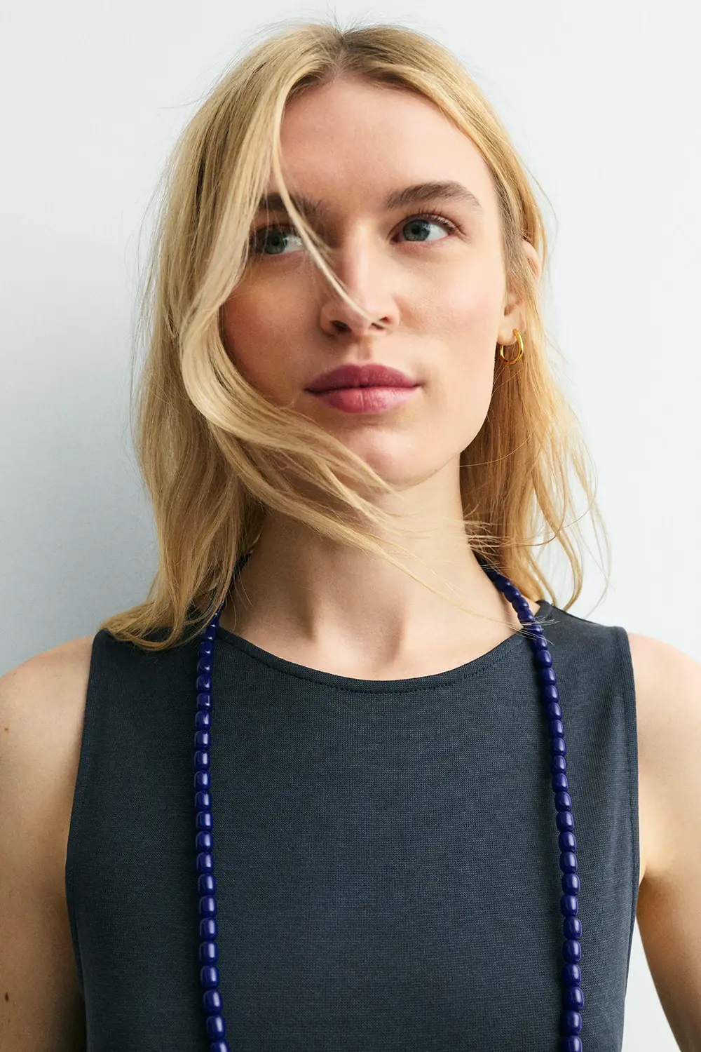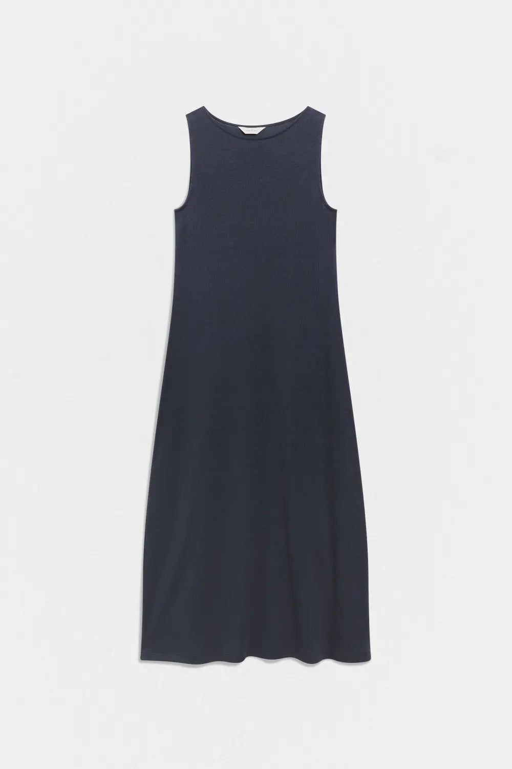 Vestido eseOese Pompeia en azul índigo con cuello redondo y tirantes.