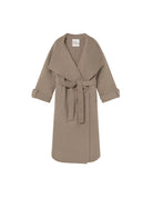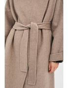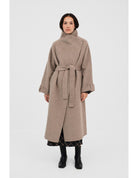 Abrigo MUS AND BOMBON Elysses largo tipo envolvente en color beige con boton en hombro y cinturón.