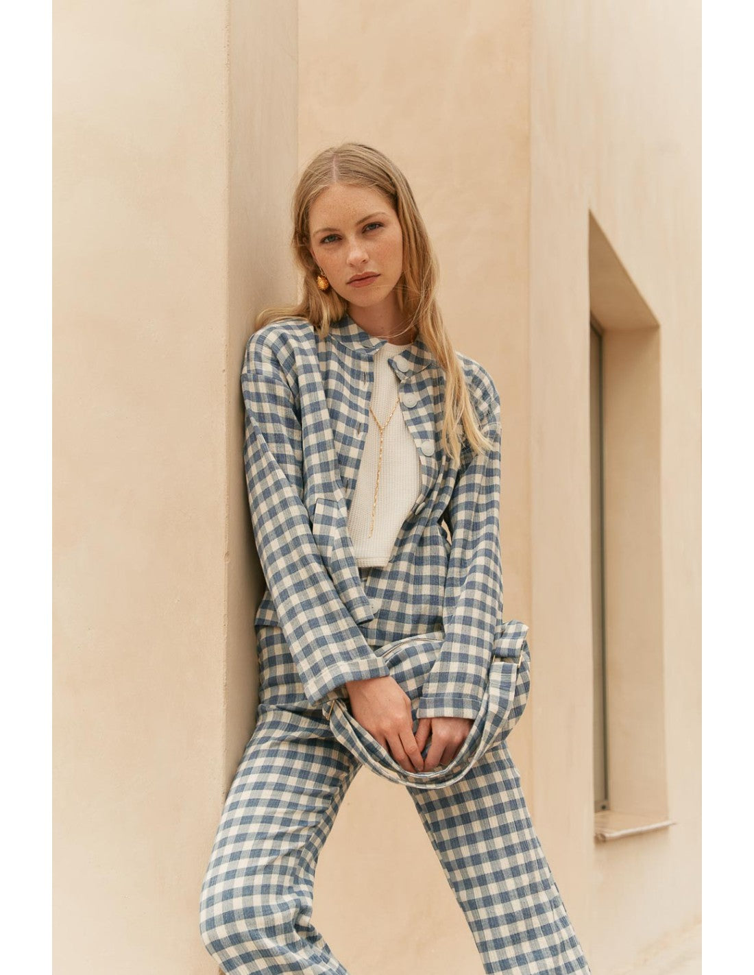 Bolso Mus & Bombon Caviana de tejido vichy y asa regulable.