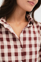 Camisa MUS AND BOMBON Marlene de cuadros vichy granate, mangas abullonadas y goma en los puños.
