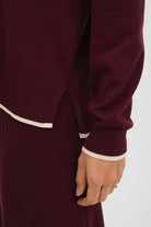 Jersey MUS AND BOMBON Asakusa granate de punto básico, bajo y puños con ribete en color crudo.