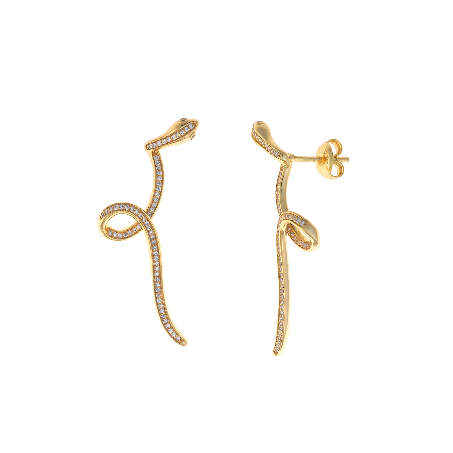 Pendientes SALVATORE PLATA 195A0160 en plata chapado dorado y circonitas, con forma de serpiente.