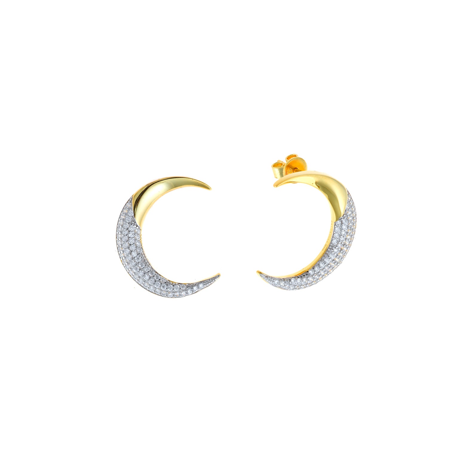 Pendientes Salvatore Plata 249A0031 en forma de media luna con circonitas blancas.