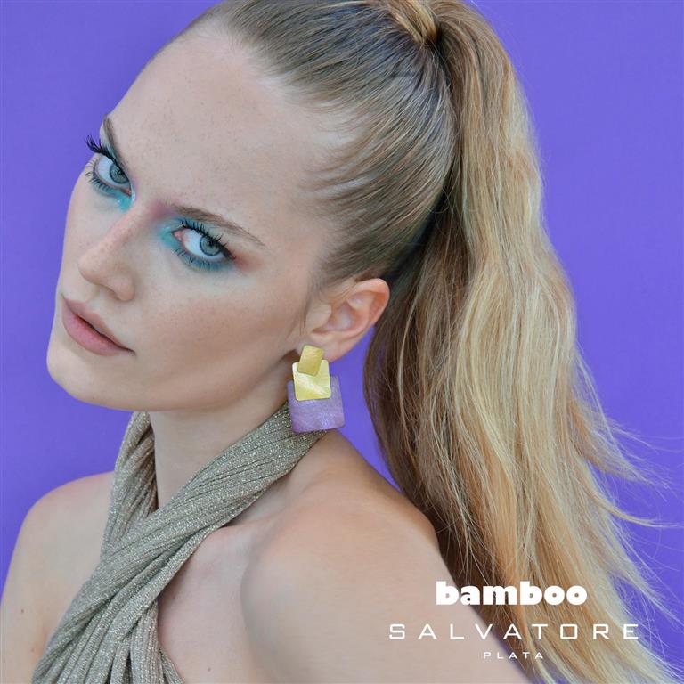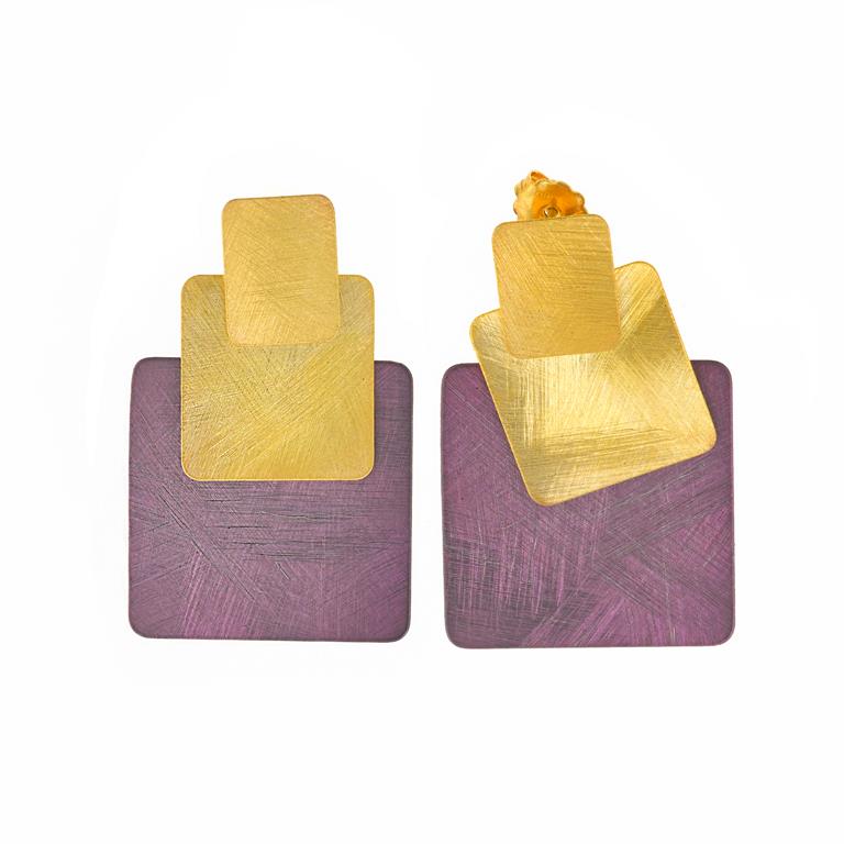 Pendientes Salvatore Plata con esmalte morado, plata dorada y matizado.