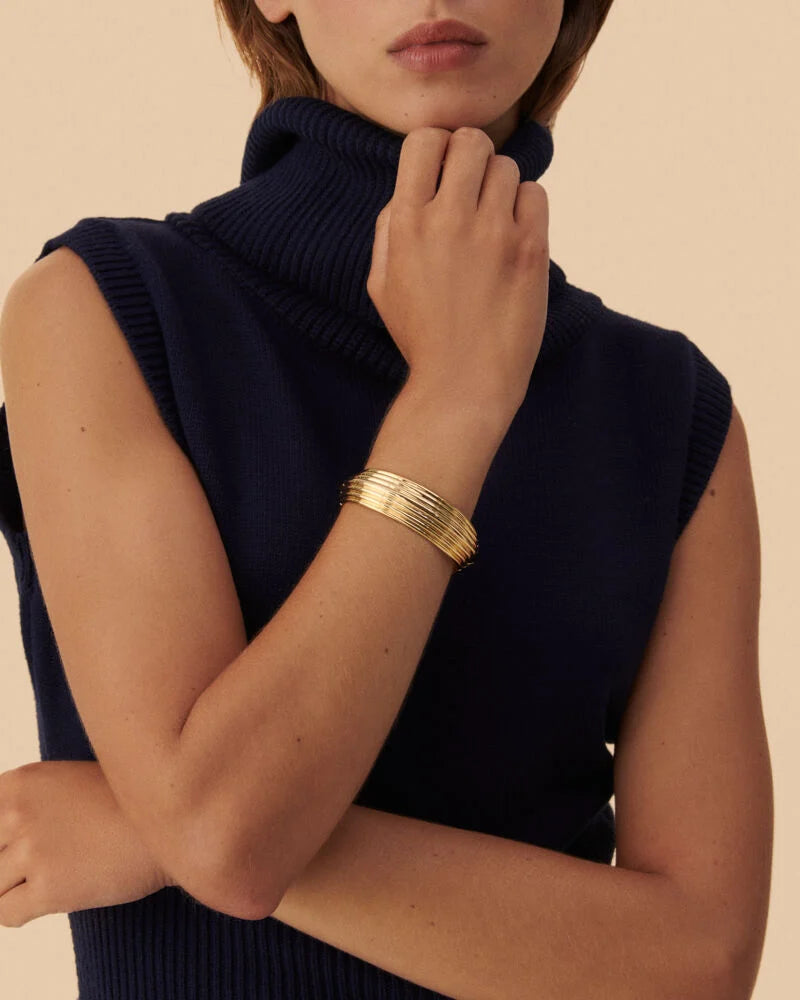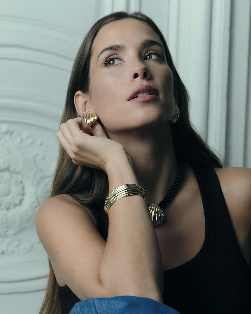 Pulsera Agatha Paris esclava en dorado rígida con cierre, inspiración concha. Pertenece a la colección N-13 de María Pombo.