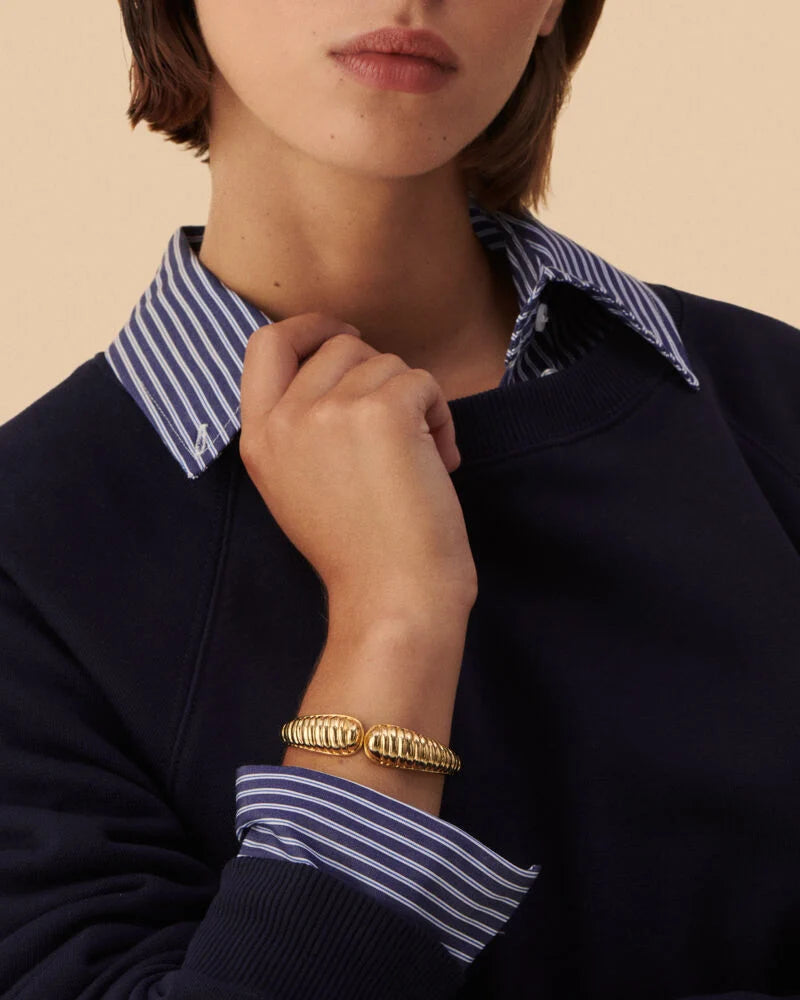 Pulsera Agatha Paris esclava en dorado, articulada y con acabado texturizado. Pertenece a la colección N-13 UNICA de María Pombo.