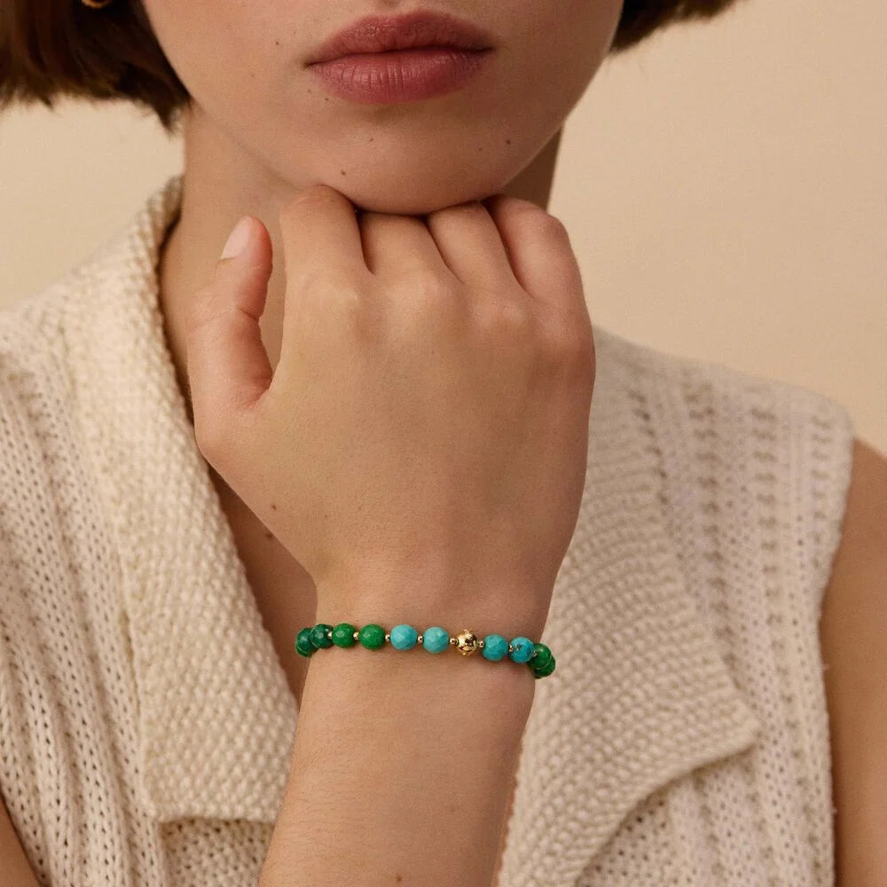 Pulsera AGATHA PARIS Nightfall verde de cuentas de piedras tintadas.